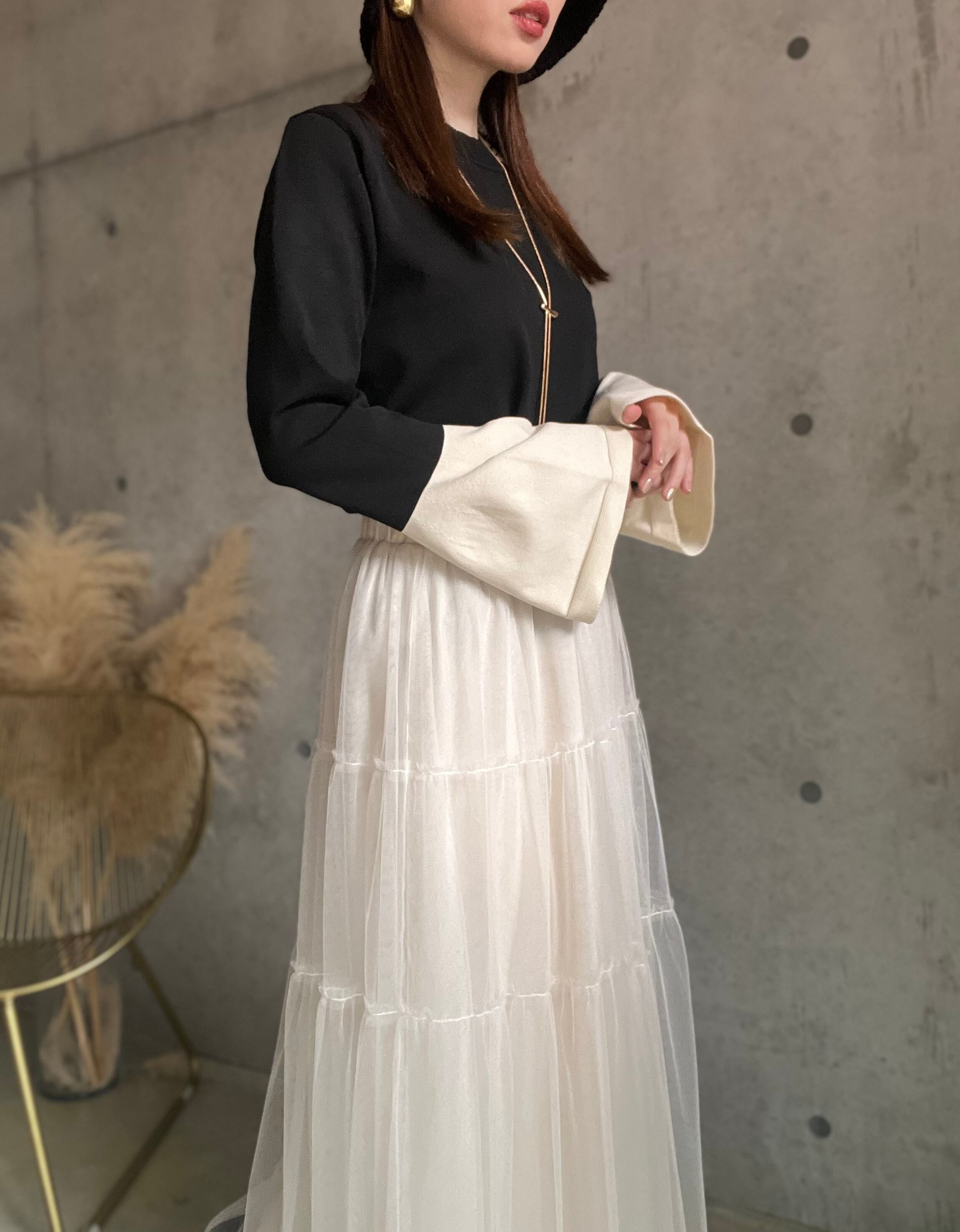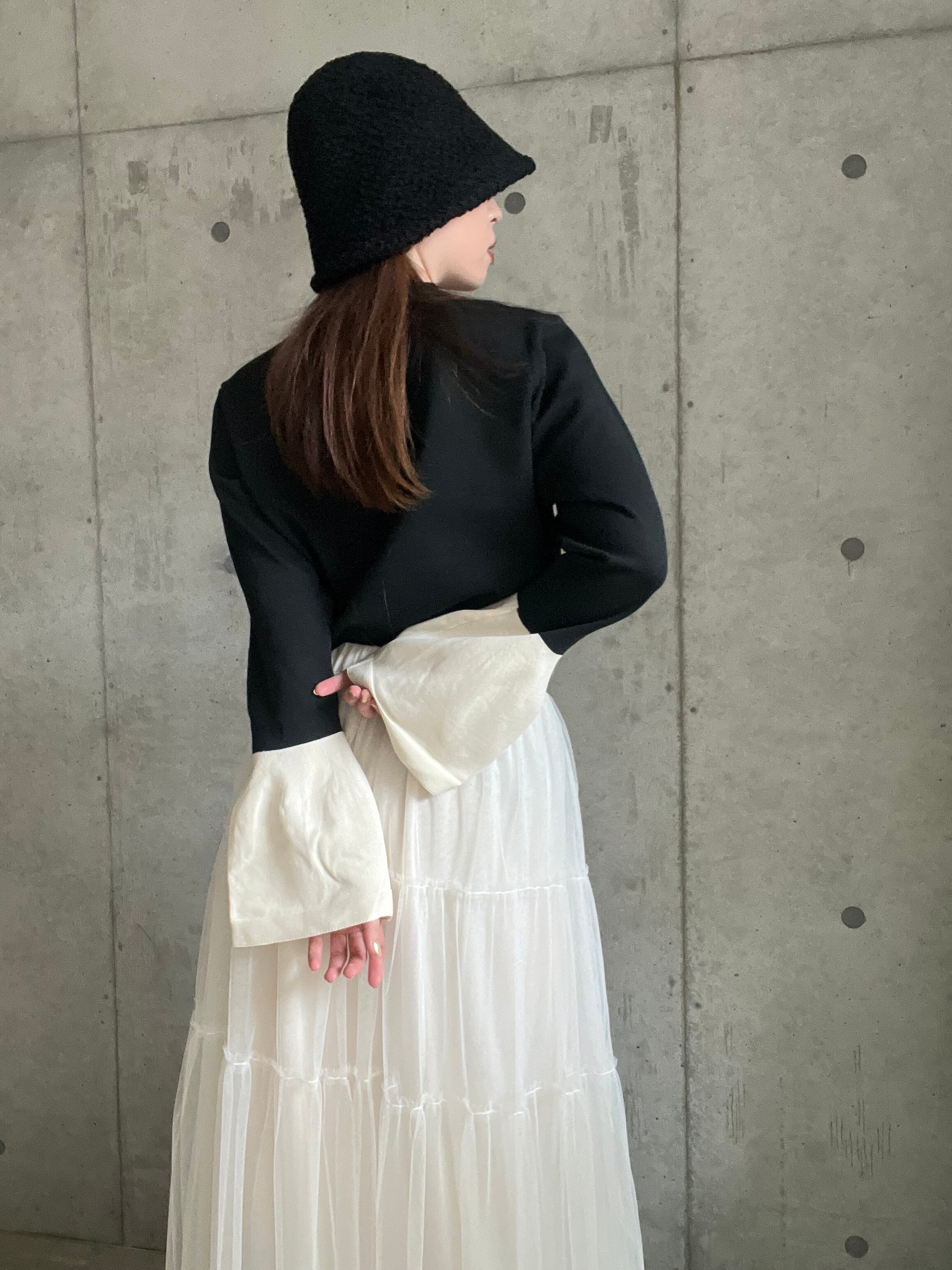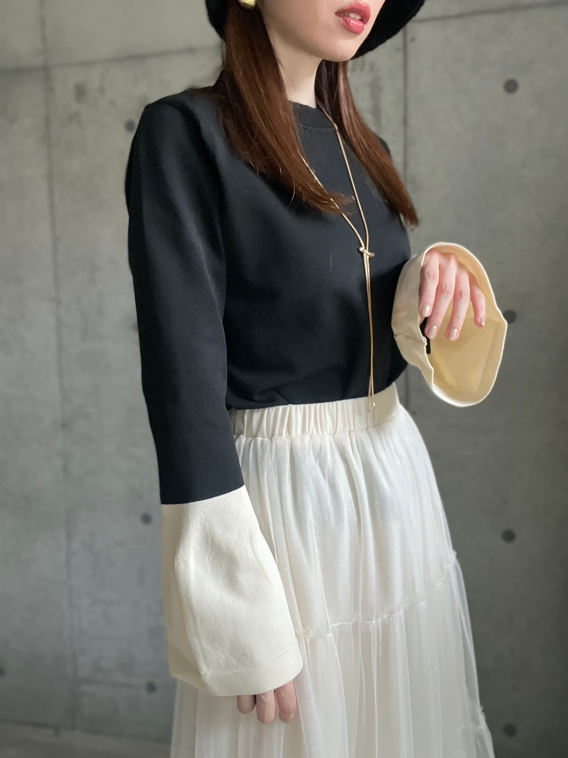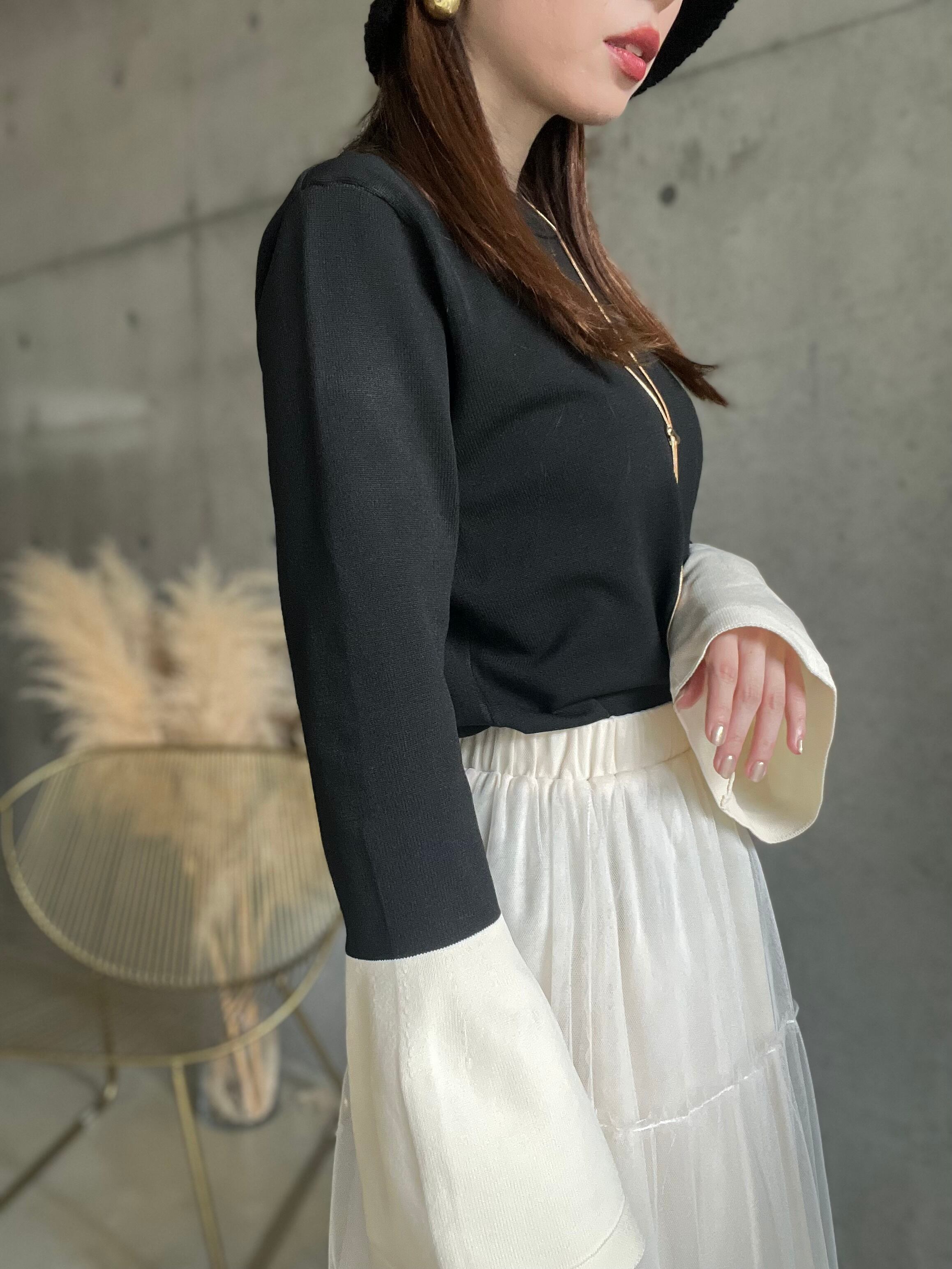 モノトーンのバイカラーとフレア袖がレトロ可愛いニット✨