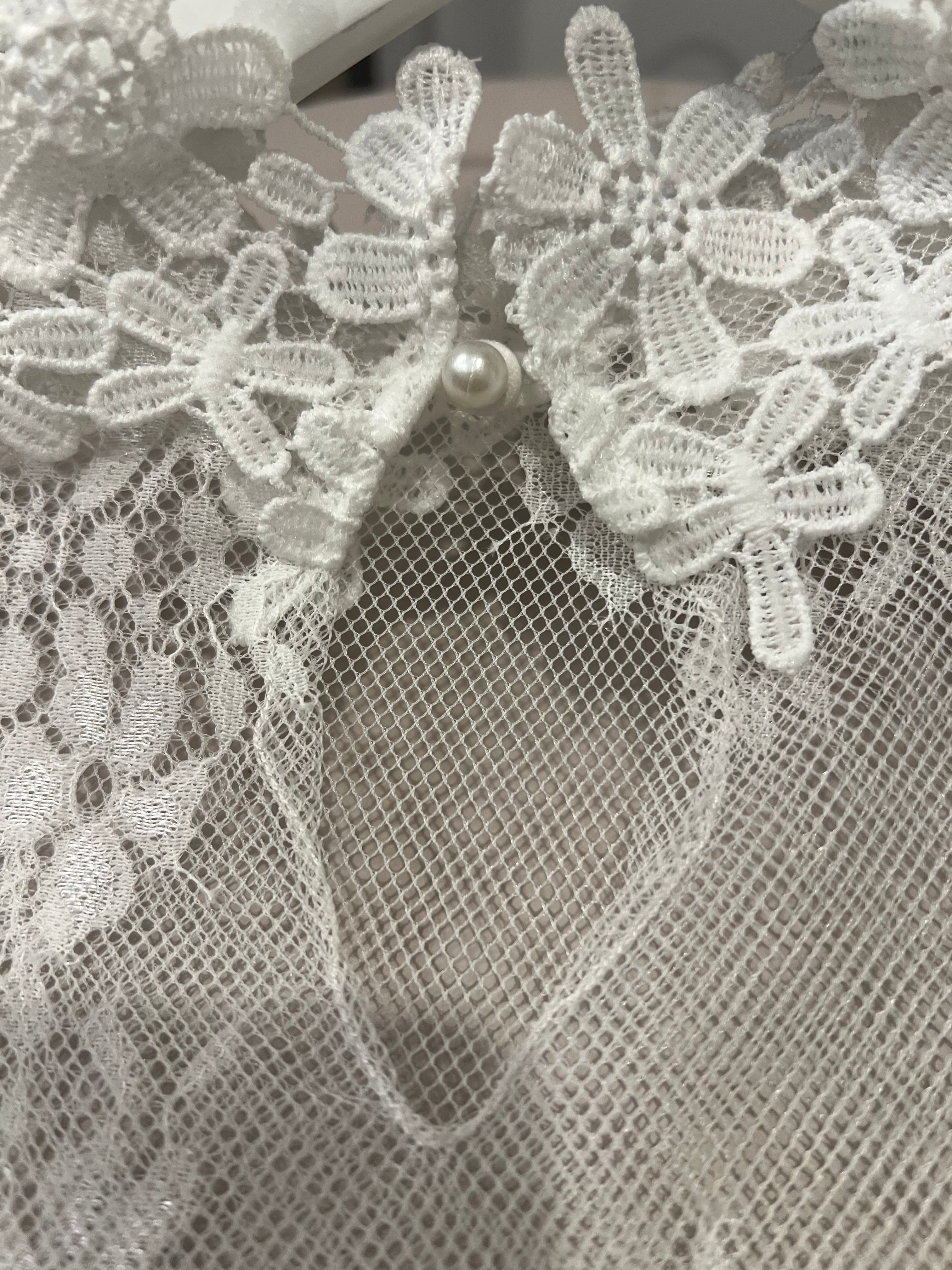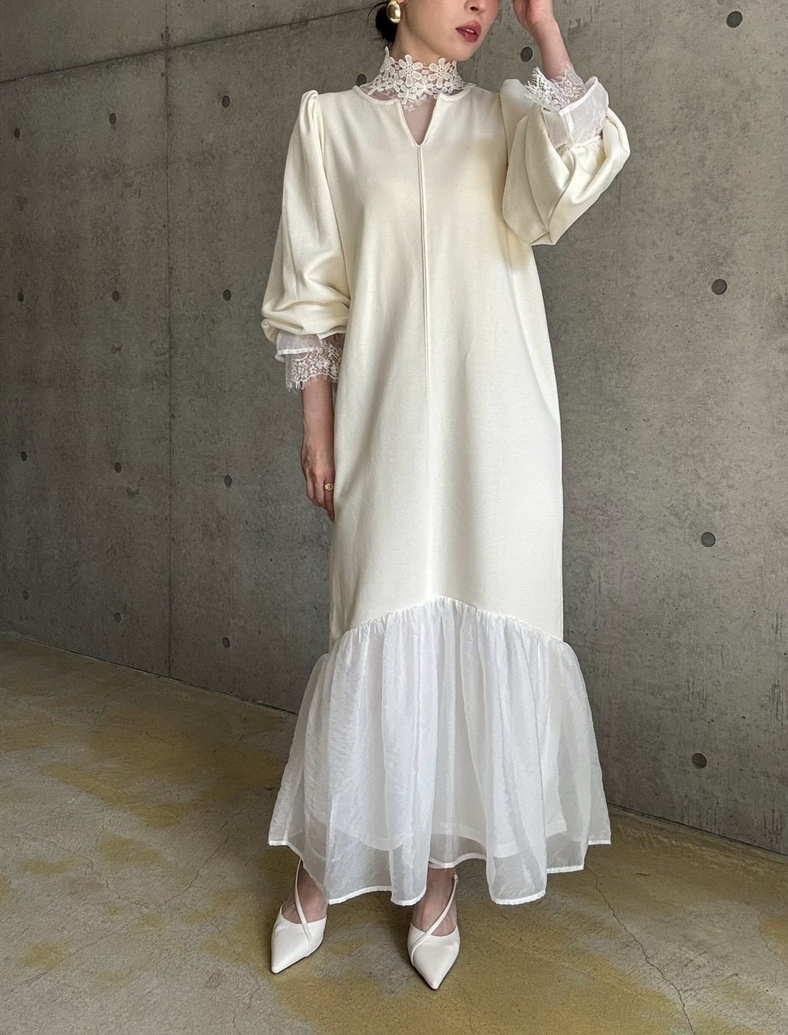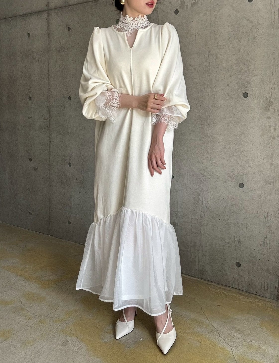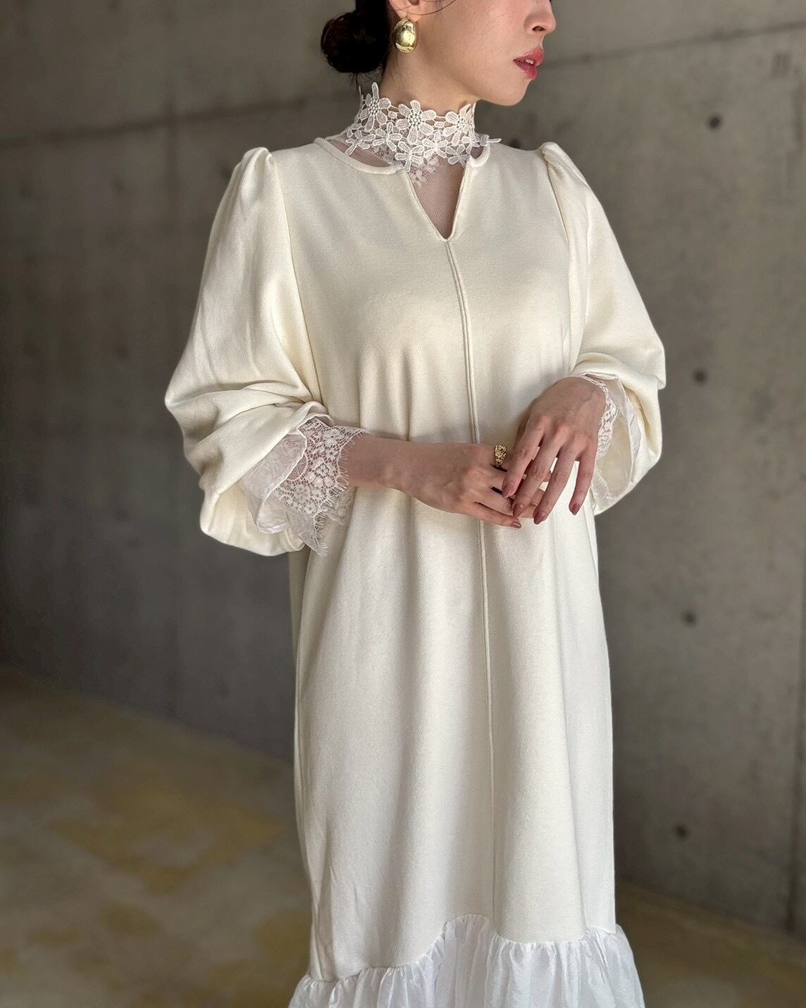 長めのキャンディスリーブや首元のしっかりめレースなど、細かなディテールがレイヤードにぴったり♡