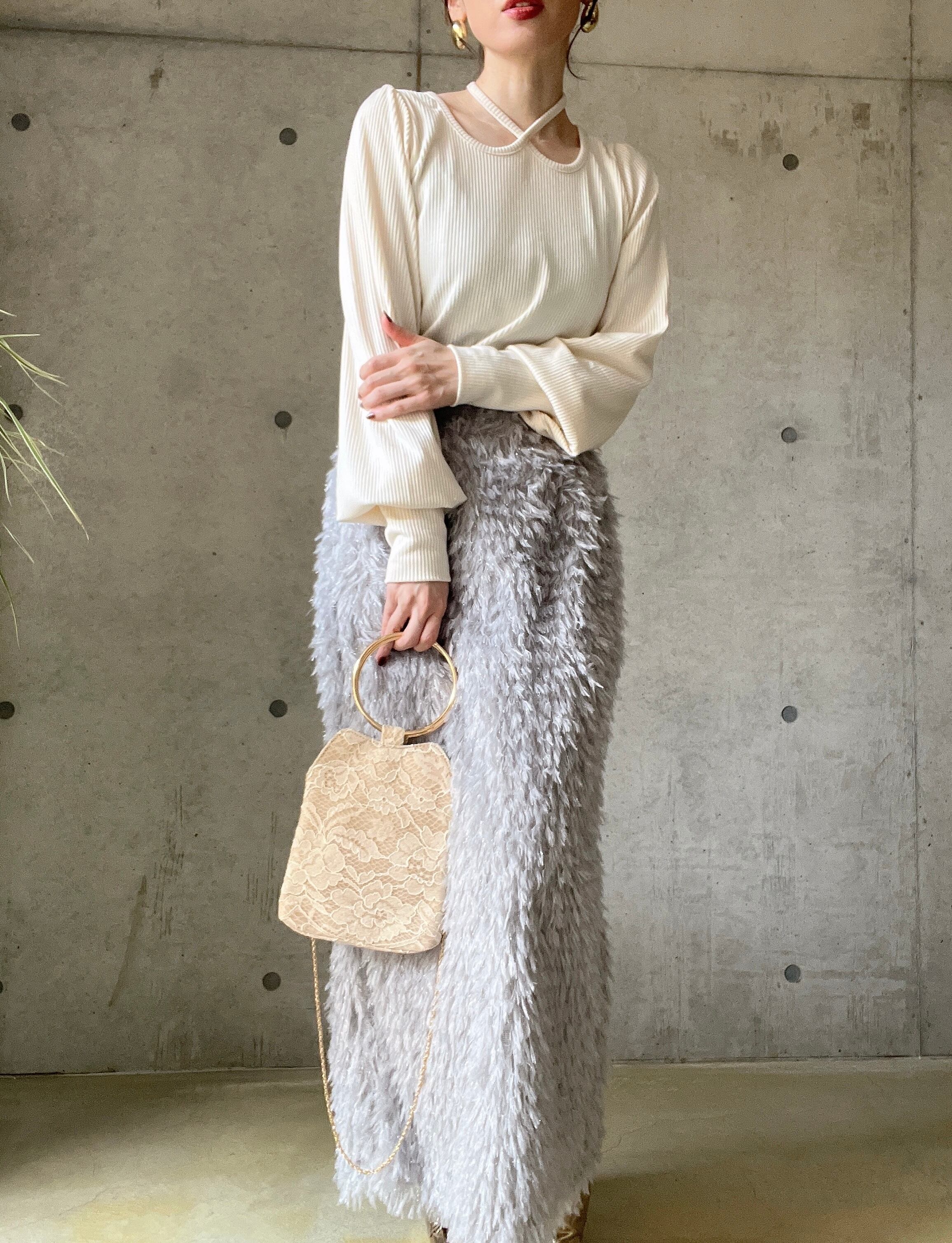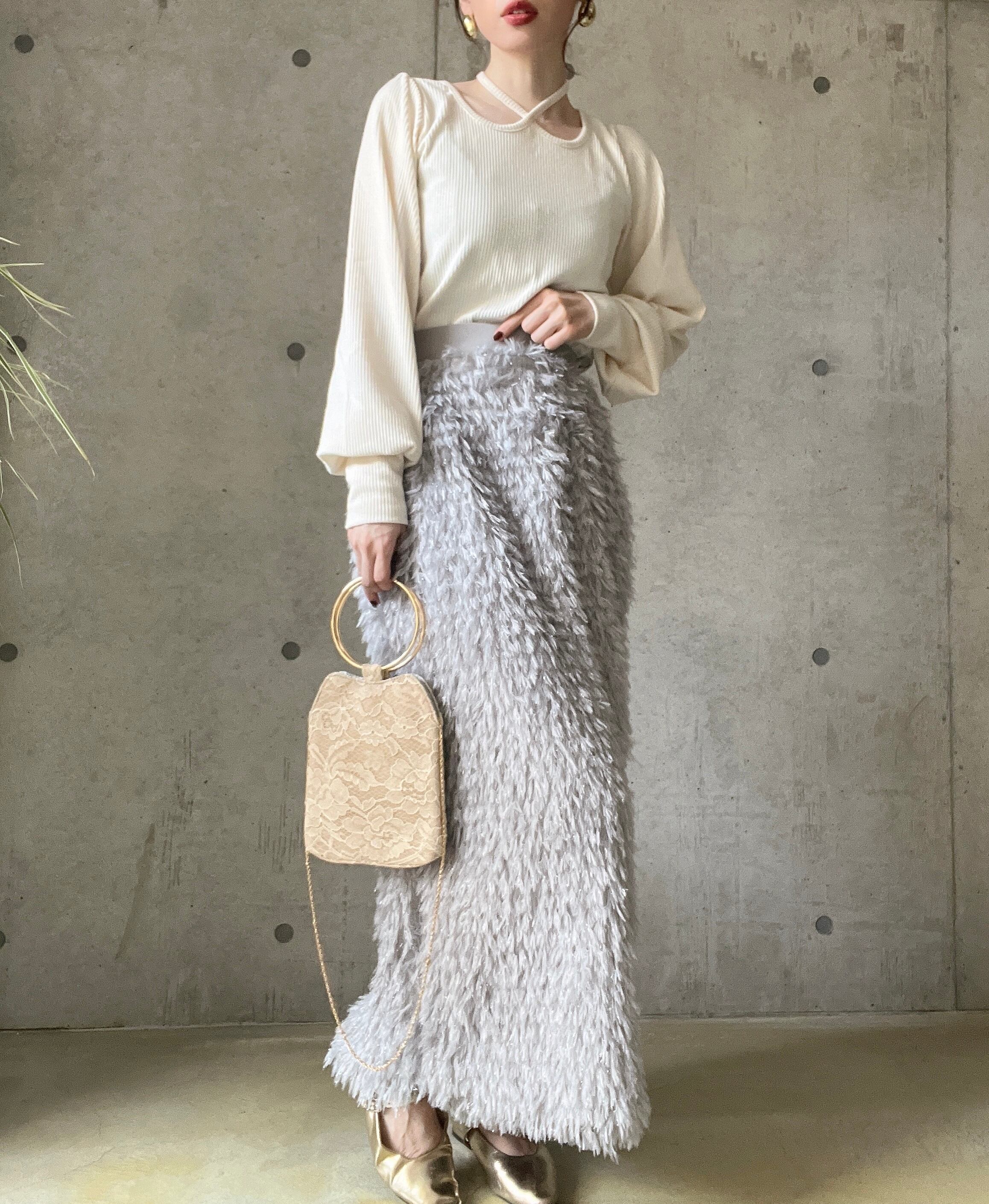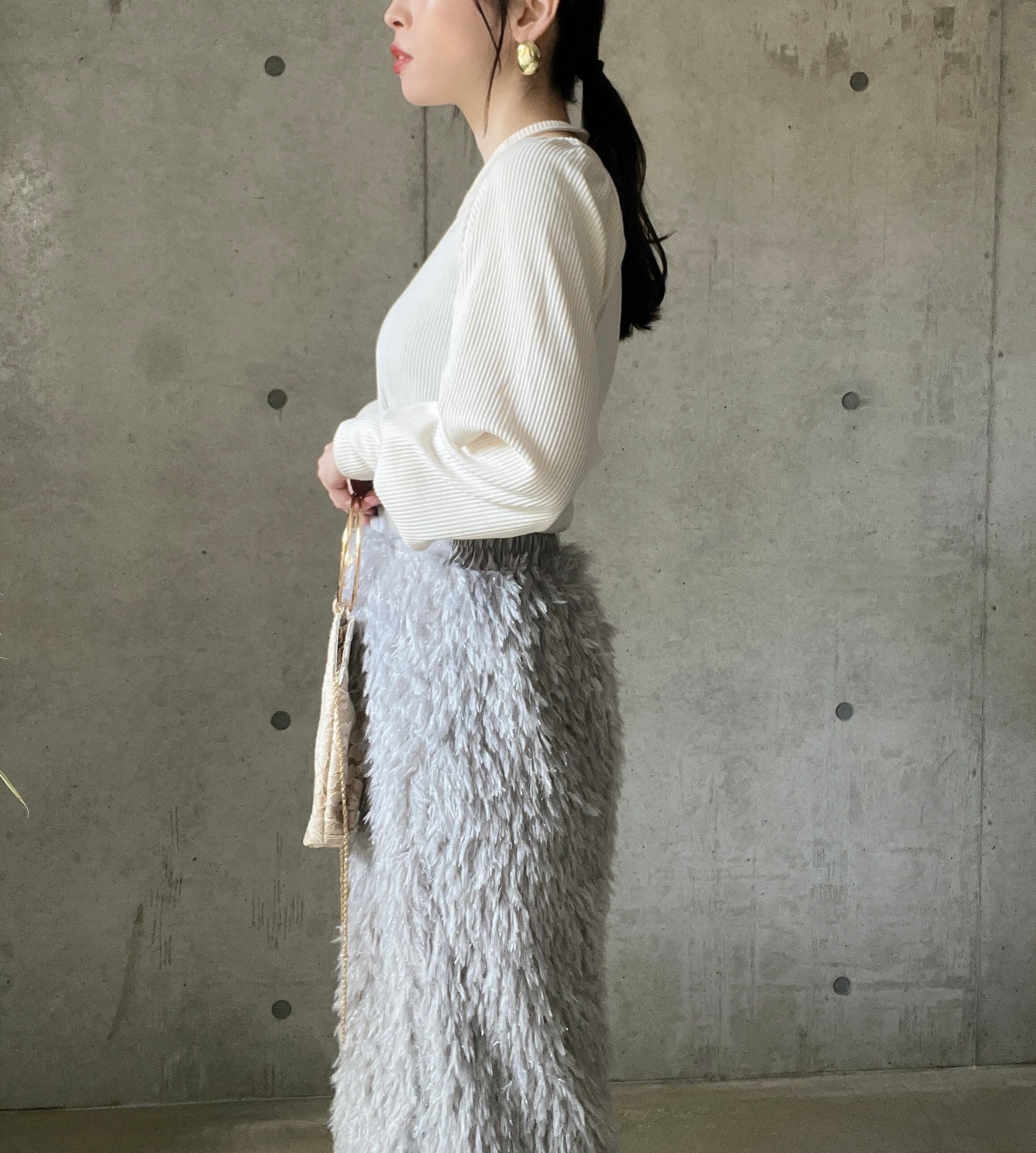 ふわふわっとしたフェザー調の素材を使用したIラインシルエットスカート✨