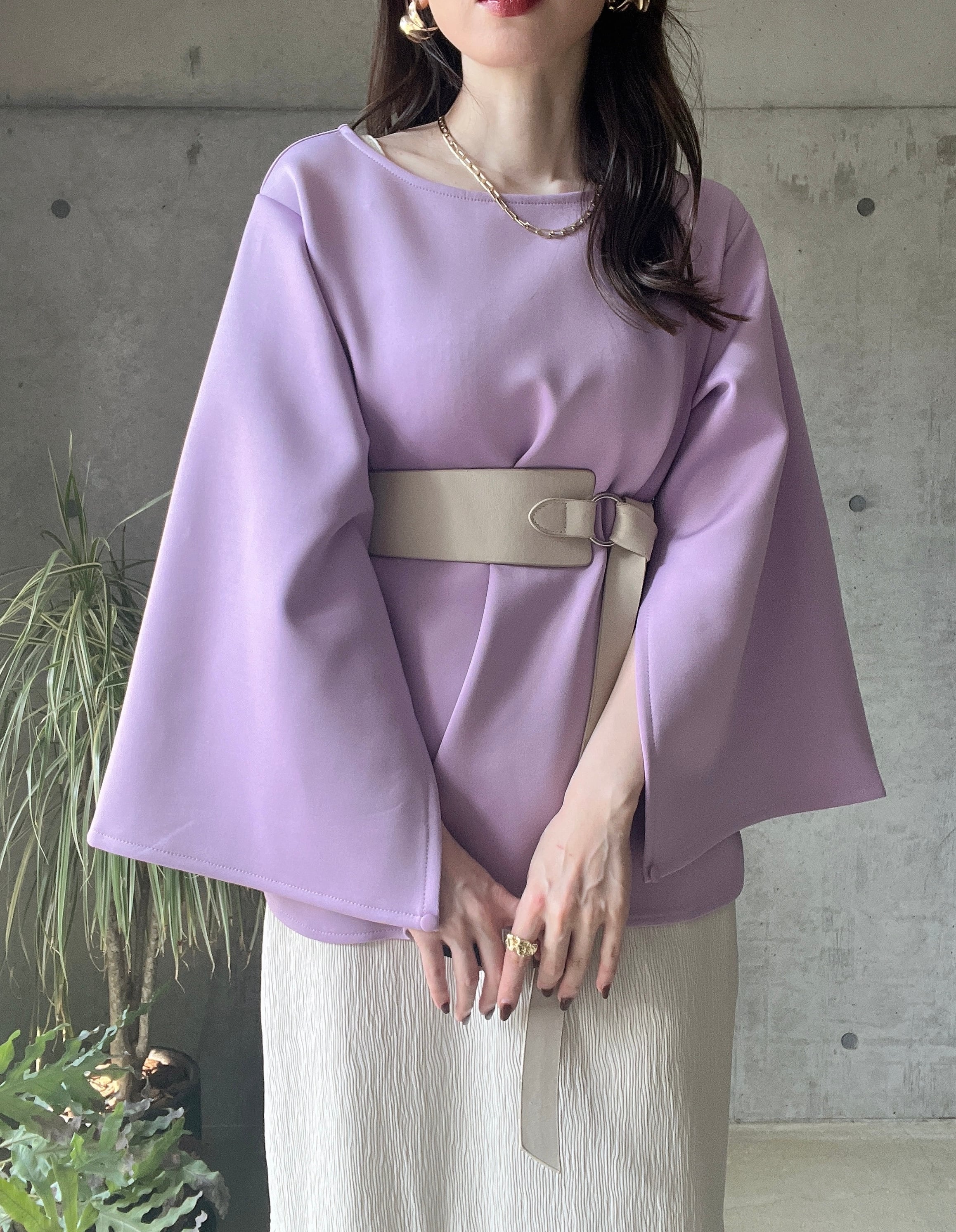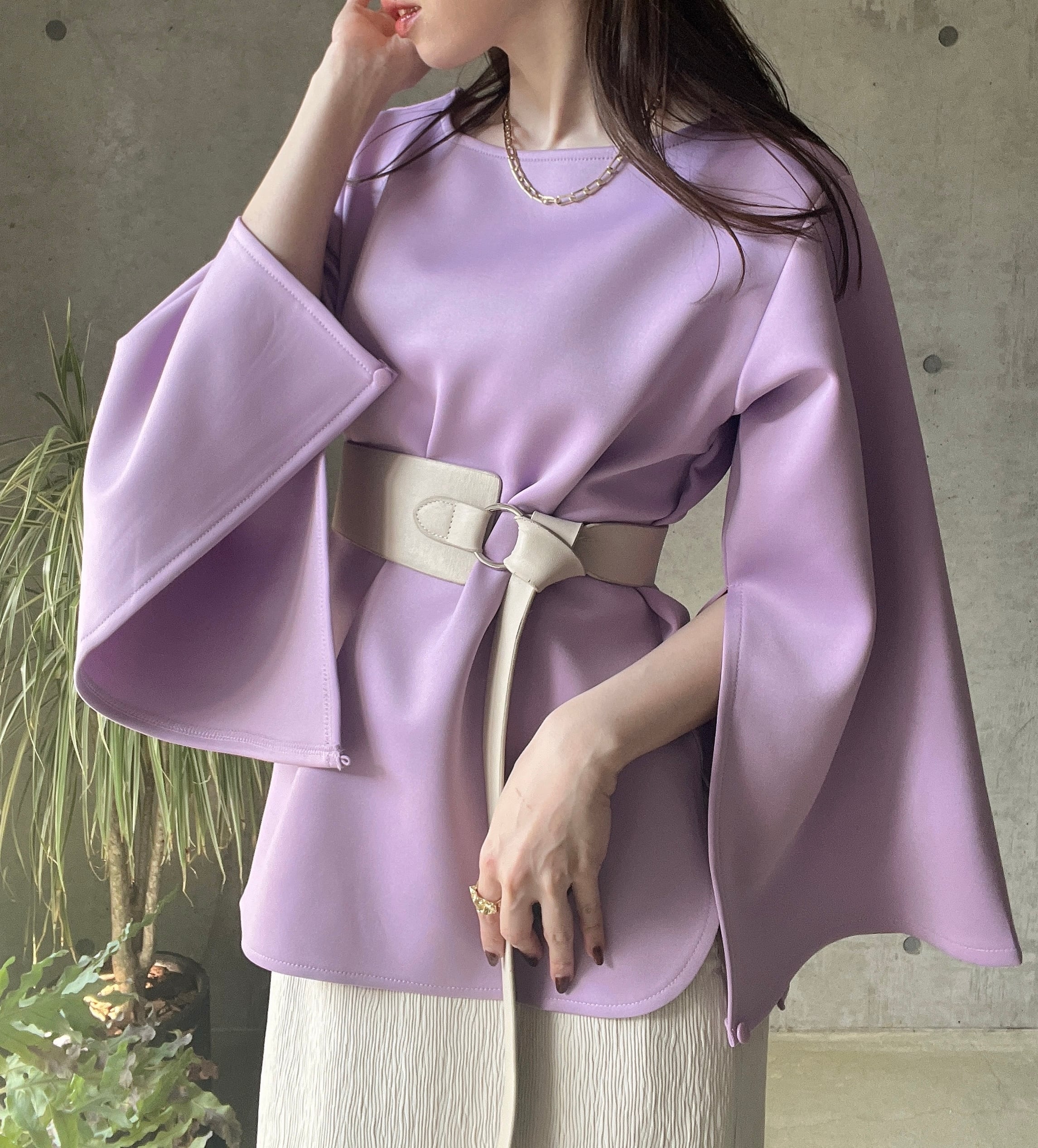 深めの袖スリットが女性らしい印象♡