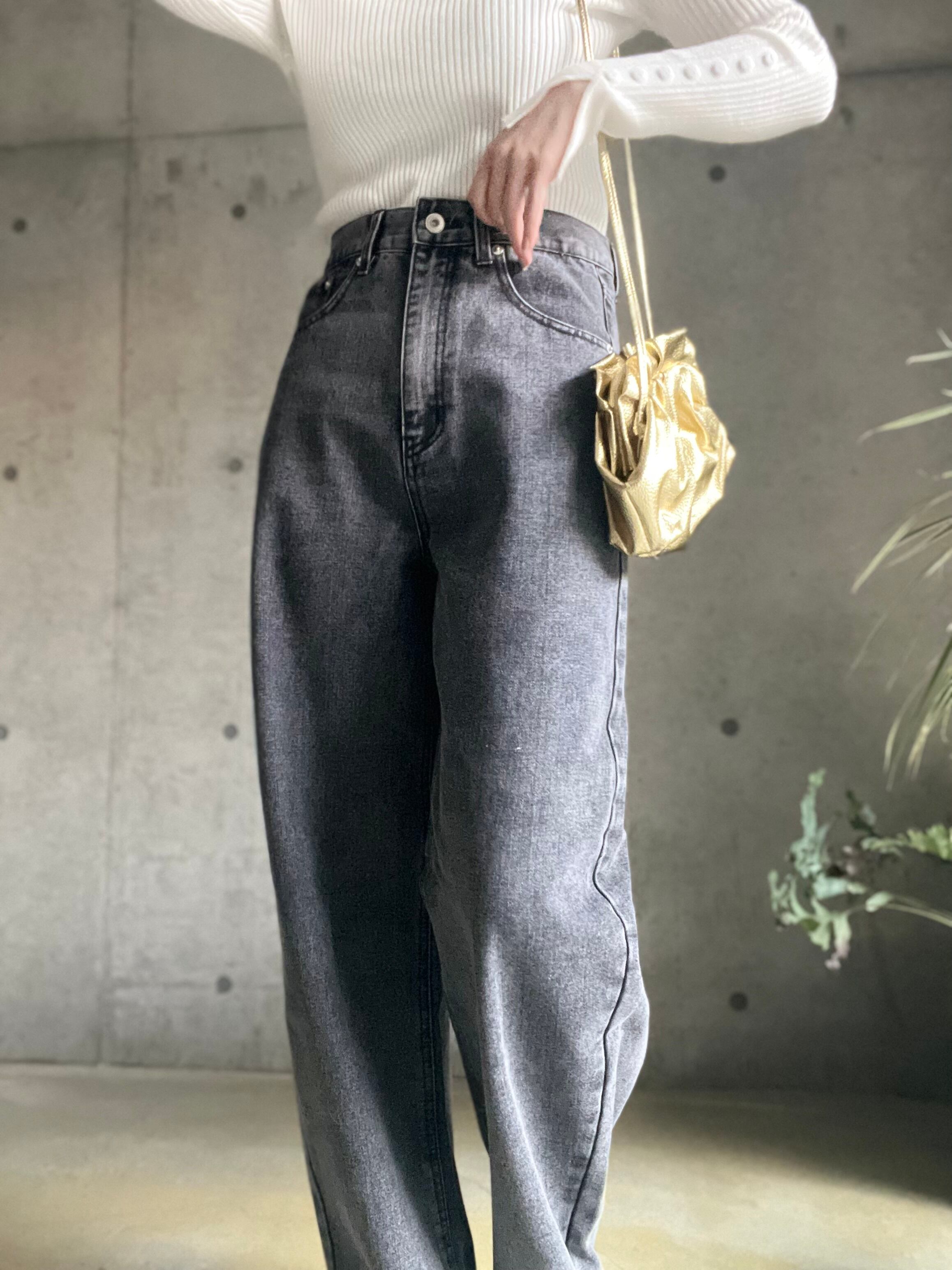 ゆるやかなカーブシルエットがポイントのデニムパンツ♪