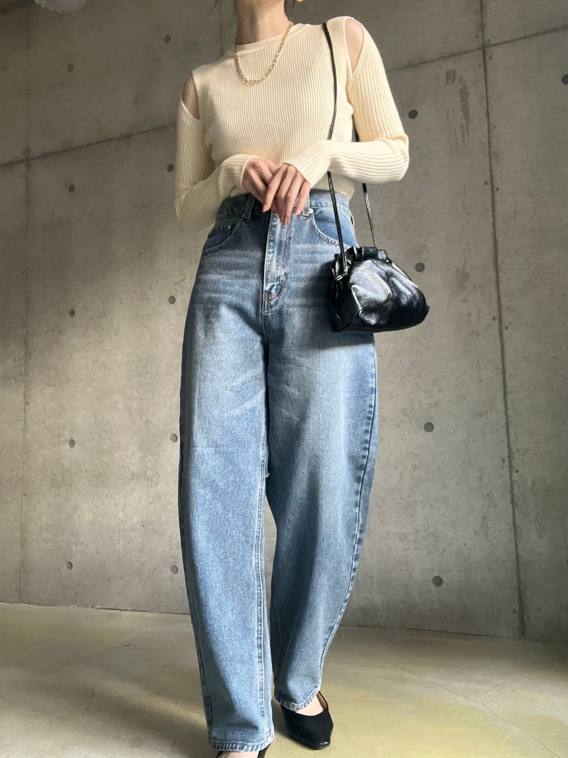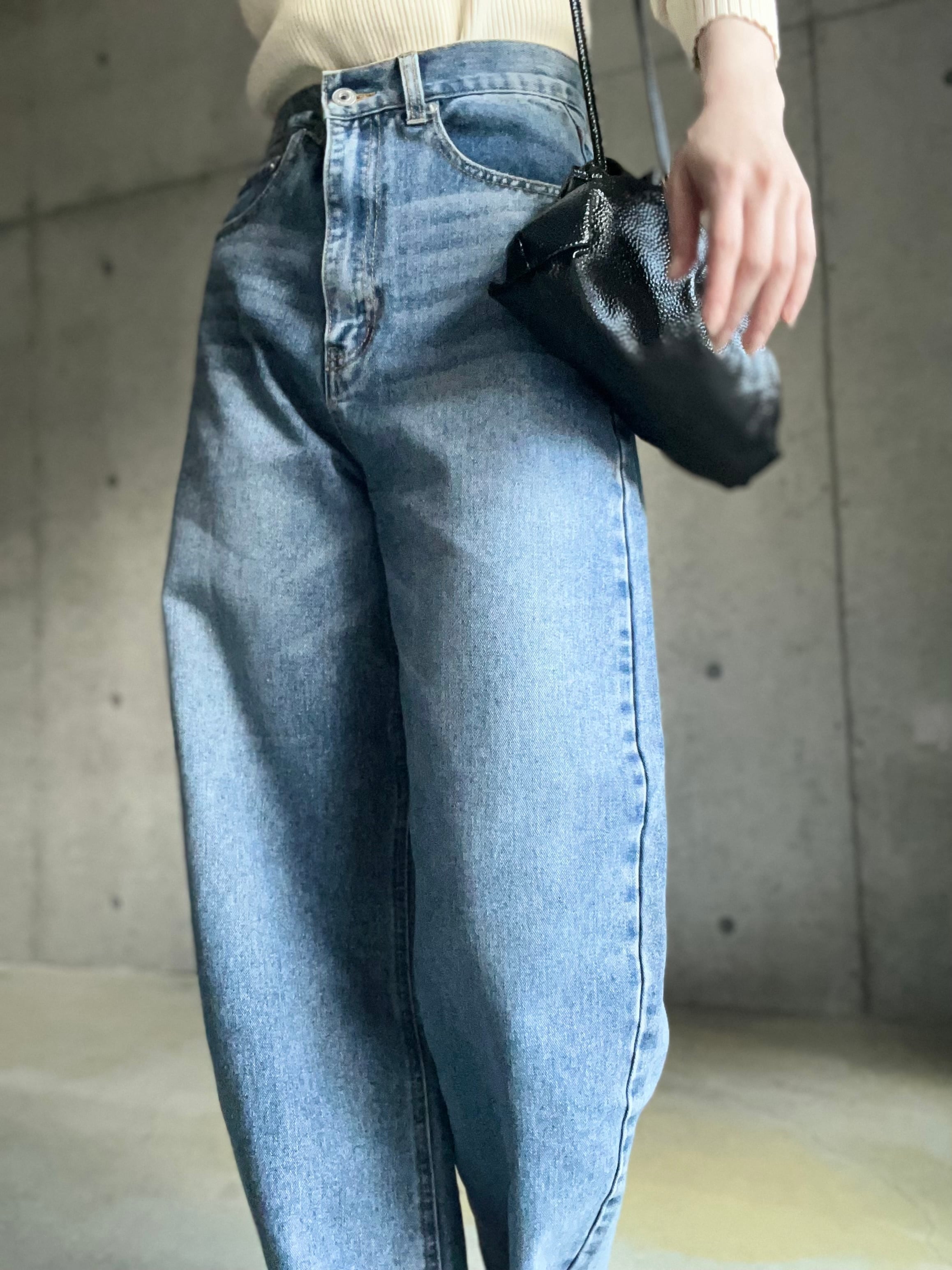ゆるやかなカーブシルエットがポイントのデニムパンツ♪