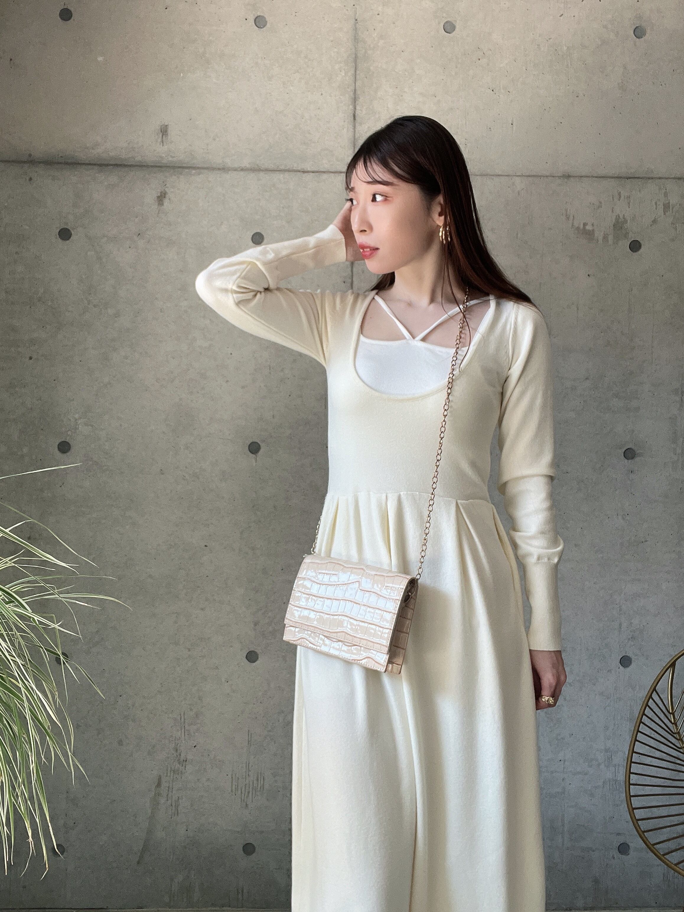 【即納】2WAYニットワンピース【アイボリー】