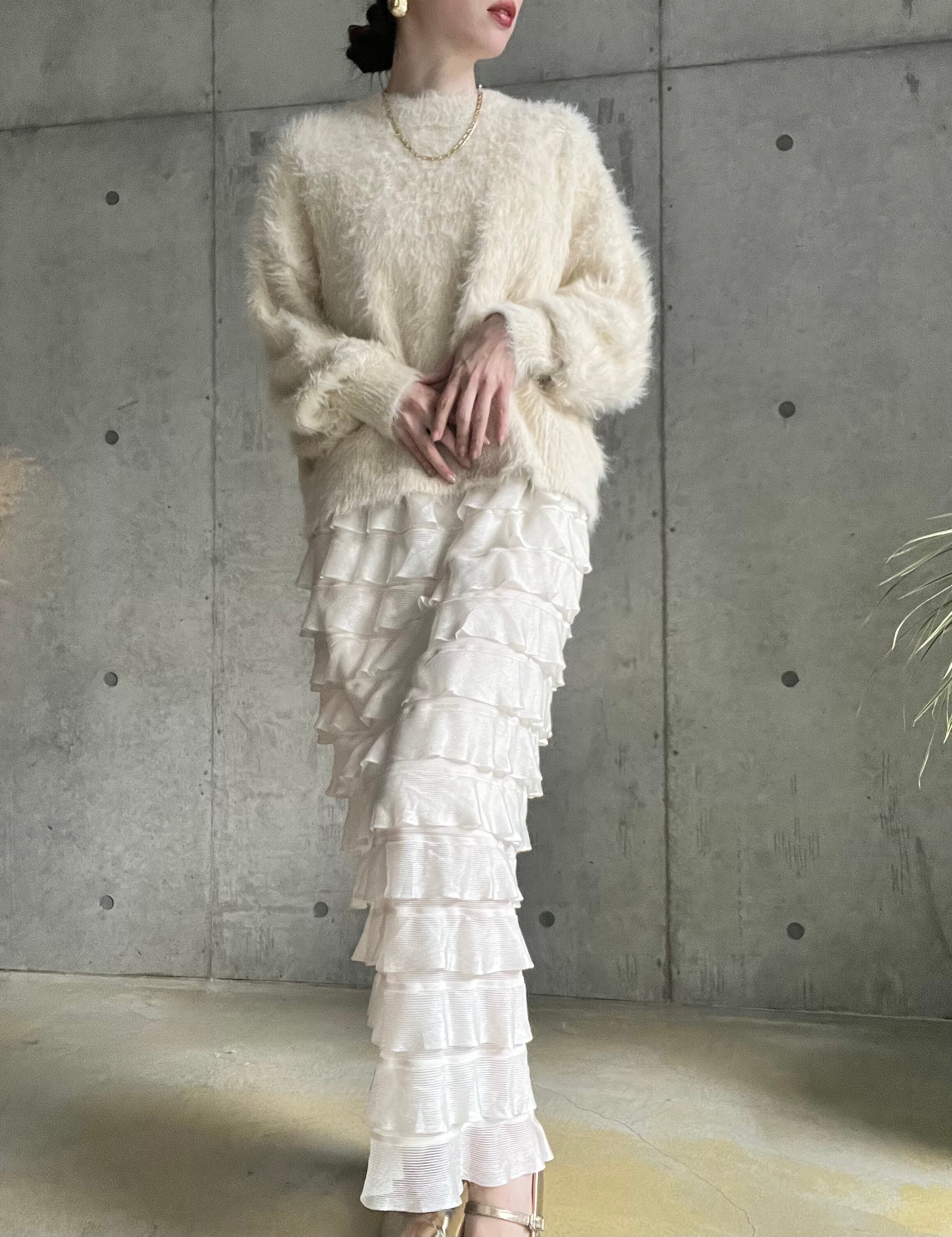 もっちりとした厚みのあるフェザーヤーンニットが高級感のある1着✨