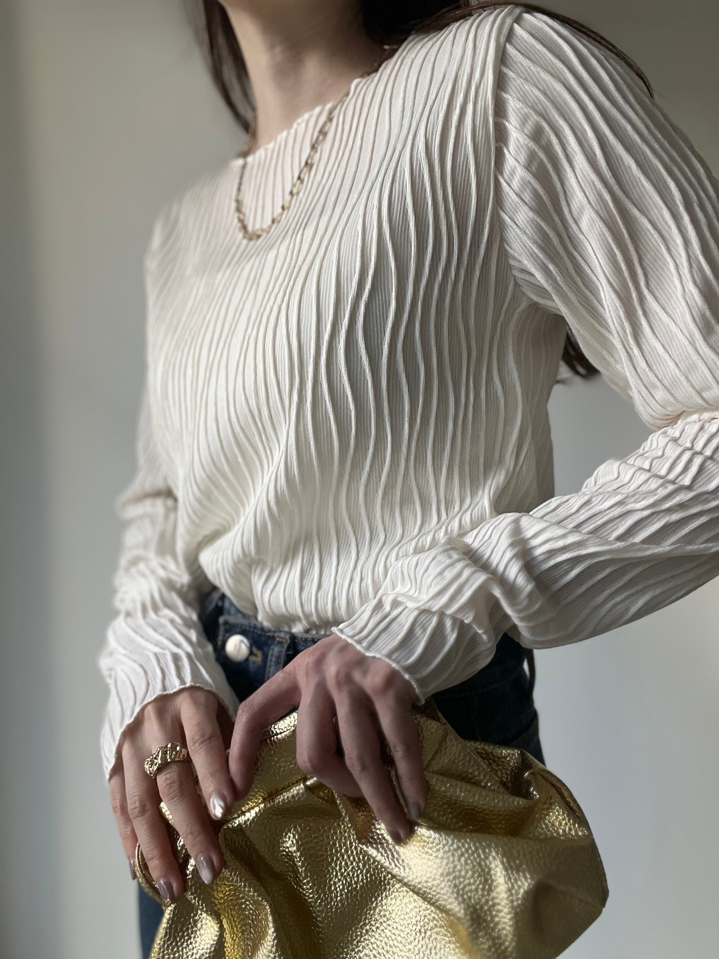 立体的なウェーブ柄がシンプルコーデのアクセントに♪