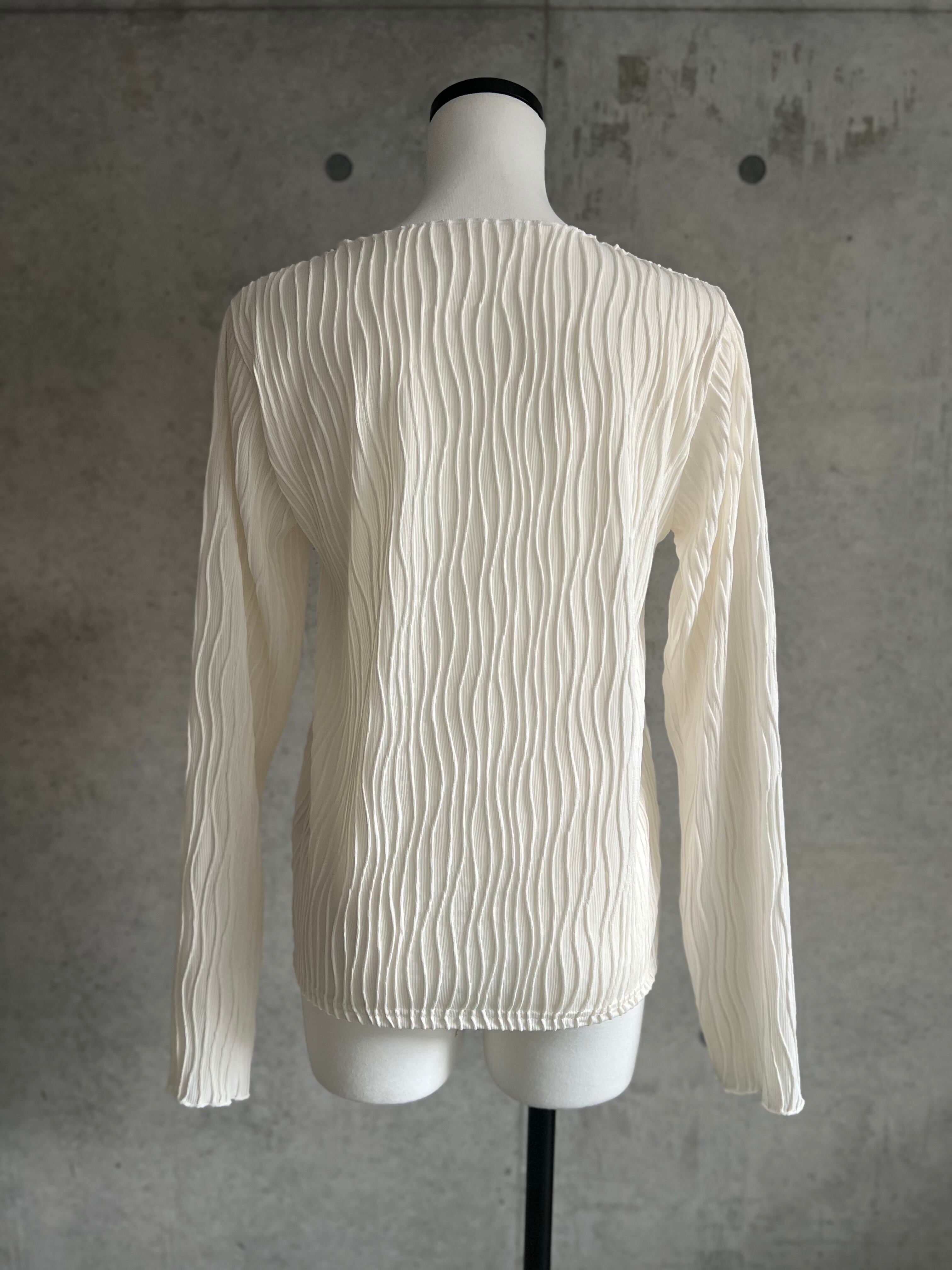 【即納】ウェーブ柄ボートネックトップス【アイボリー】