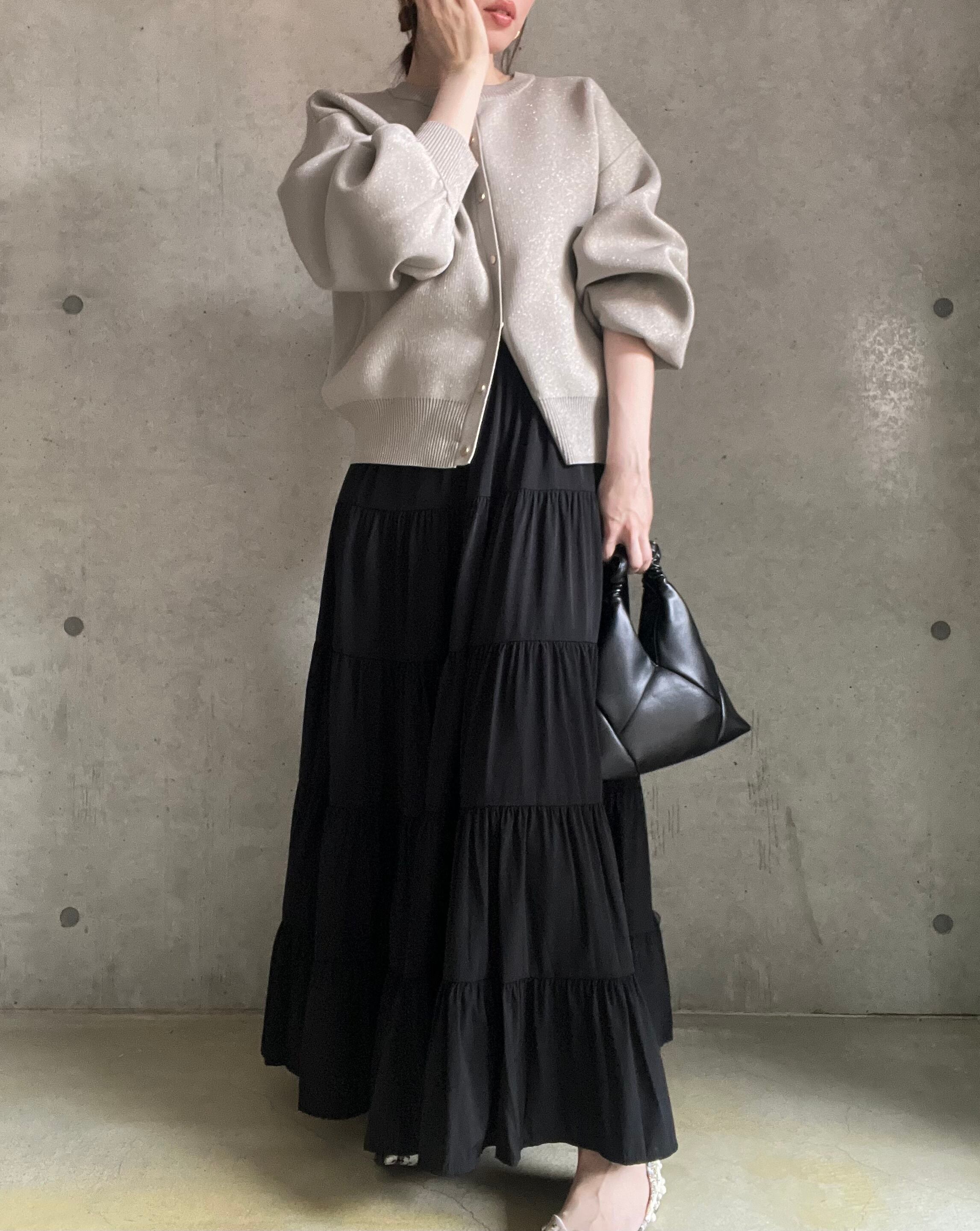 ふわっとエアリーな素材感がポイントのマキシ丈ティアードスカート✨