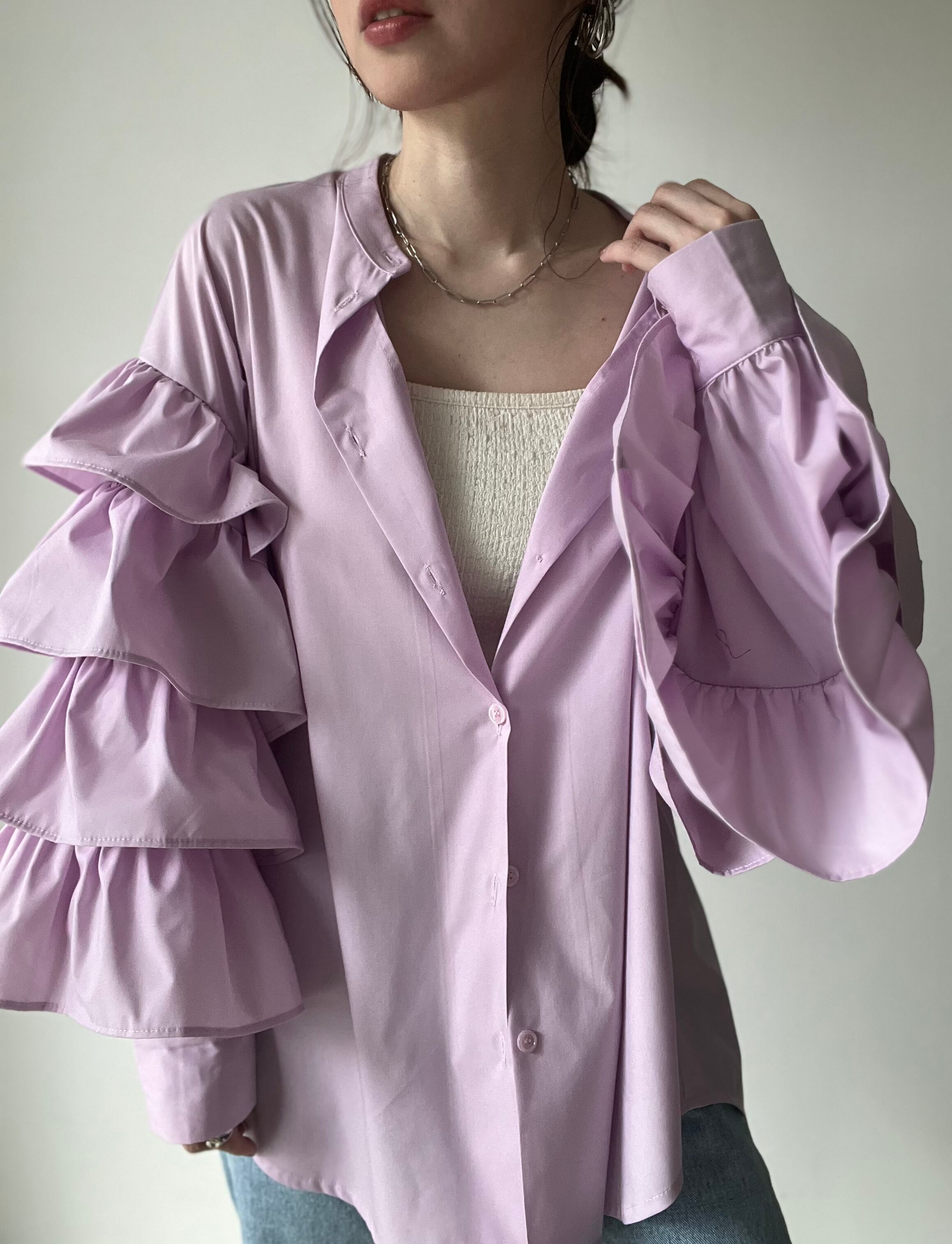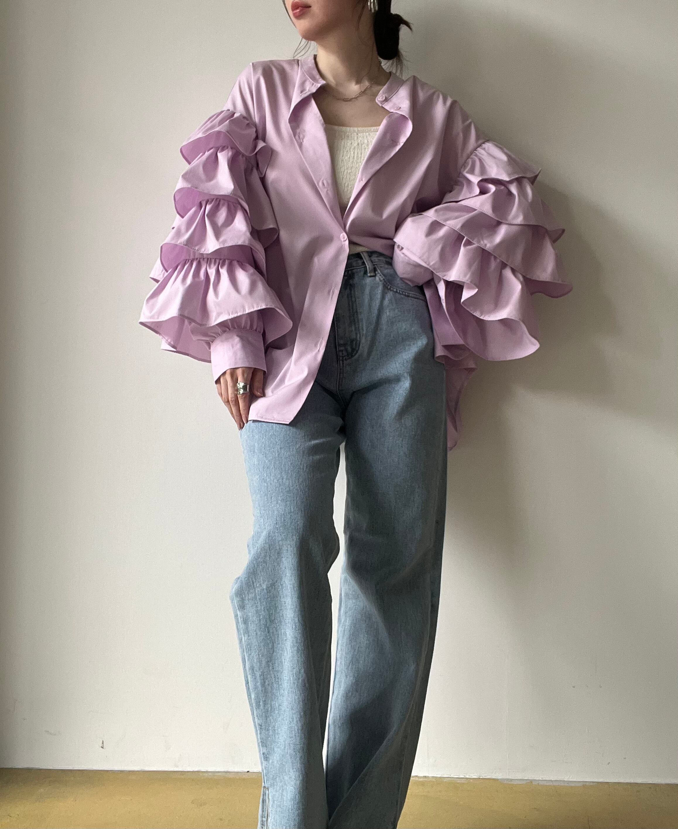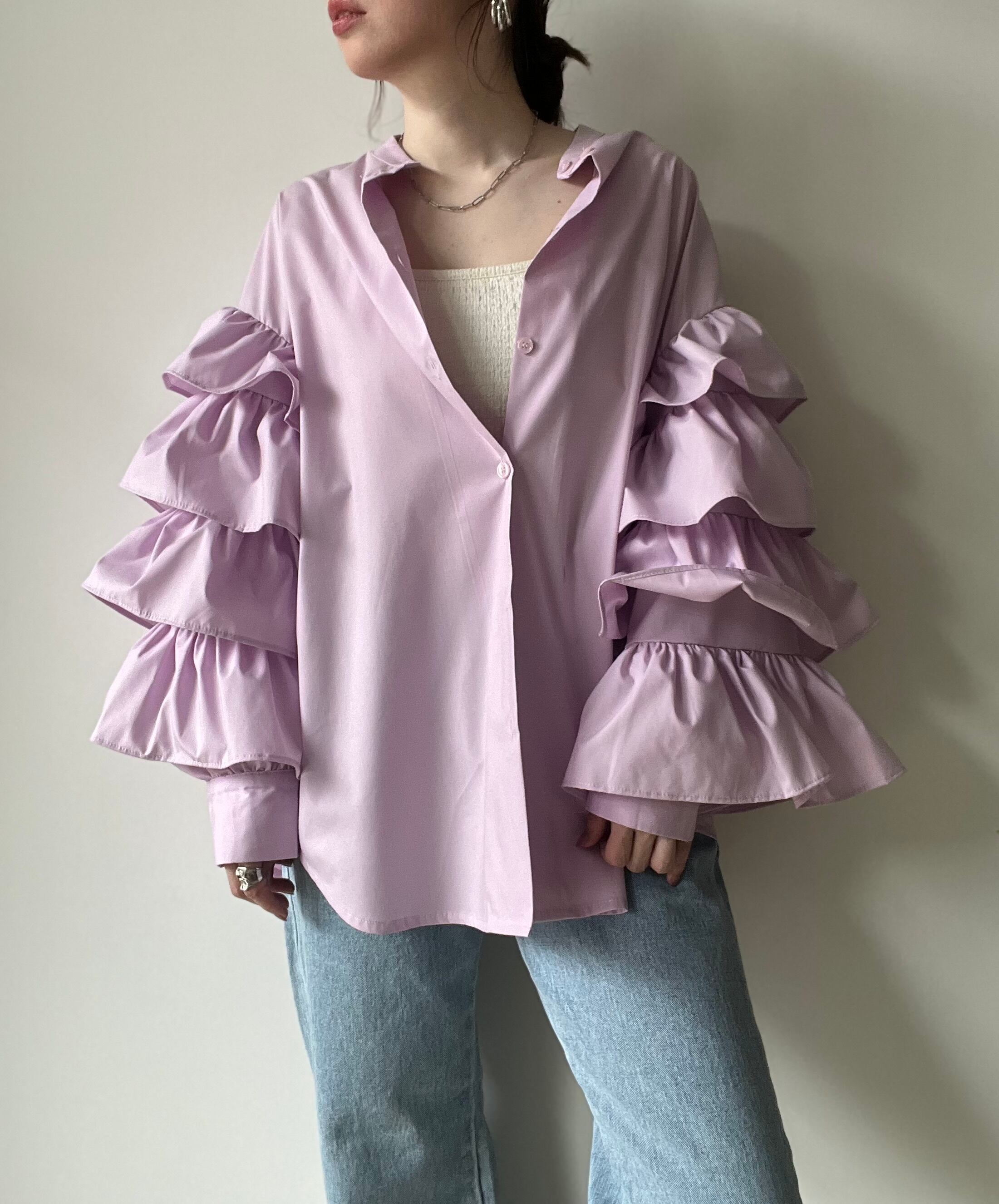 袖のボリュームフリルが女性らしい華やかな印象のブラウス✨