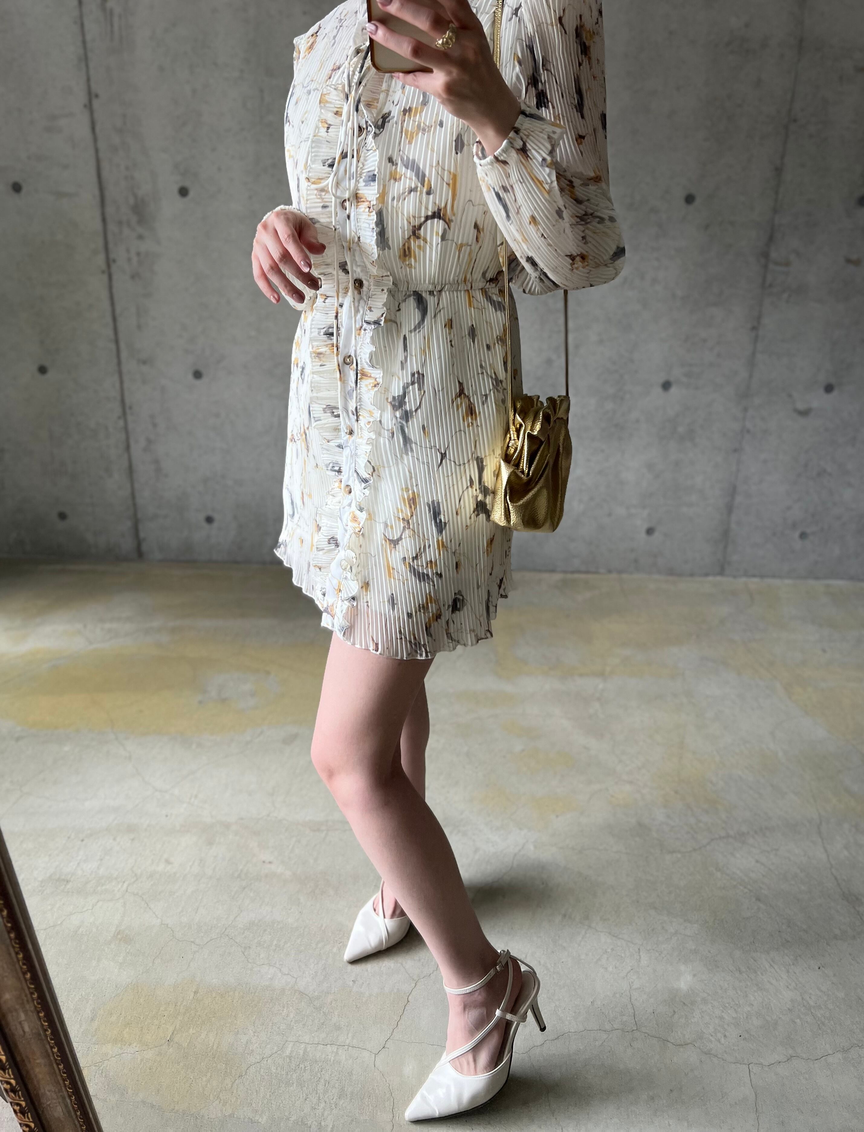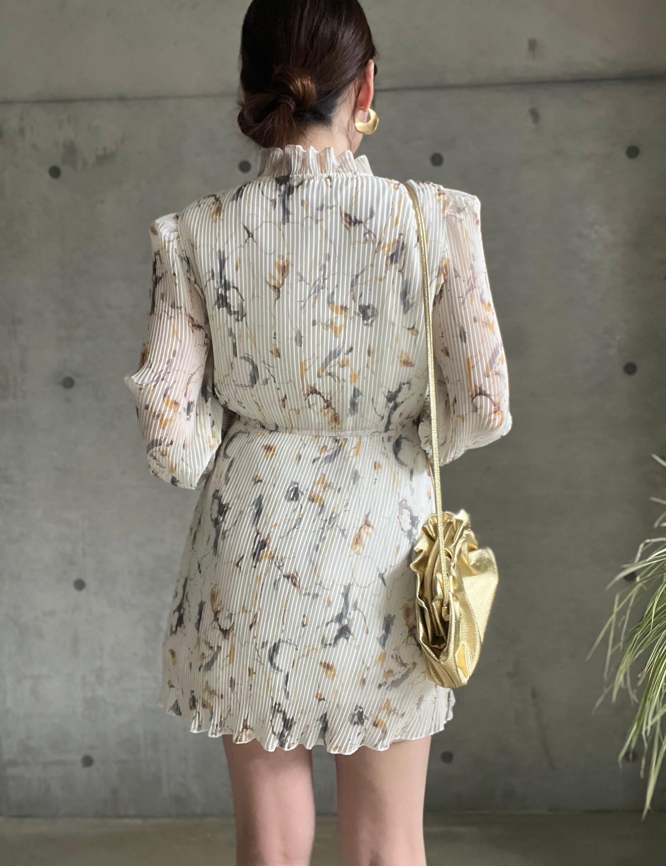 アコーディオンプリーツ生地がしなやかに身体に沿って、女性らしいシルエットを演出してくれます。