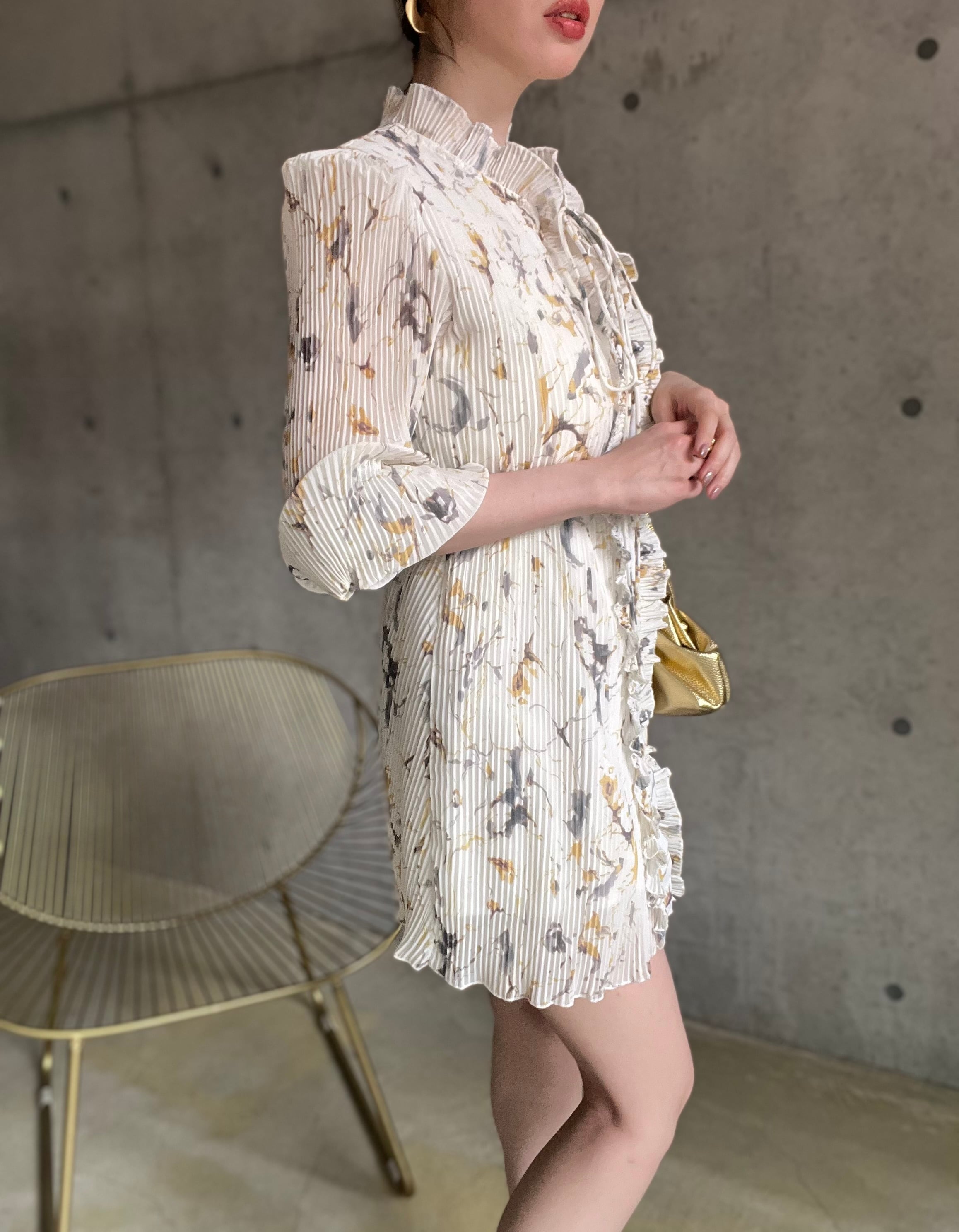 フロントのフリルやデコルテデザイン、ウエストゴムなどディテールにこだわったアイテム。