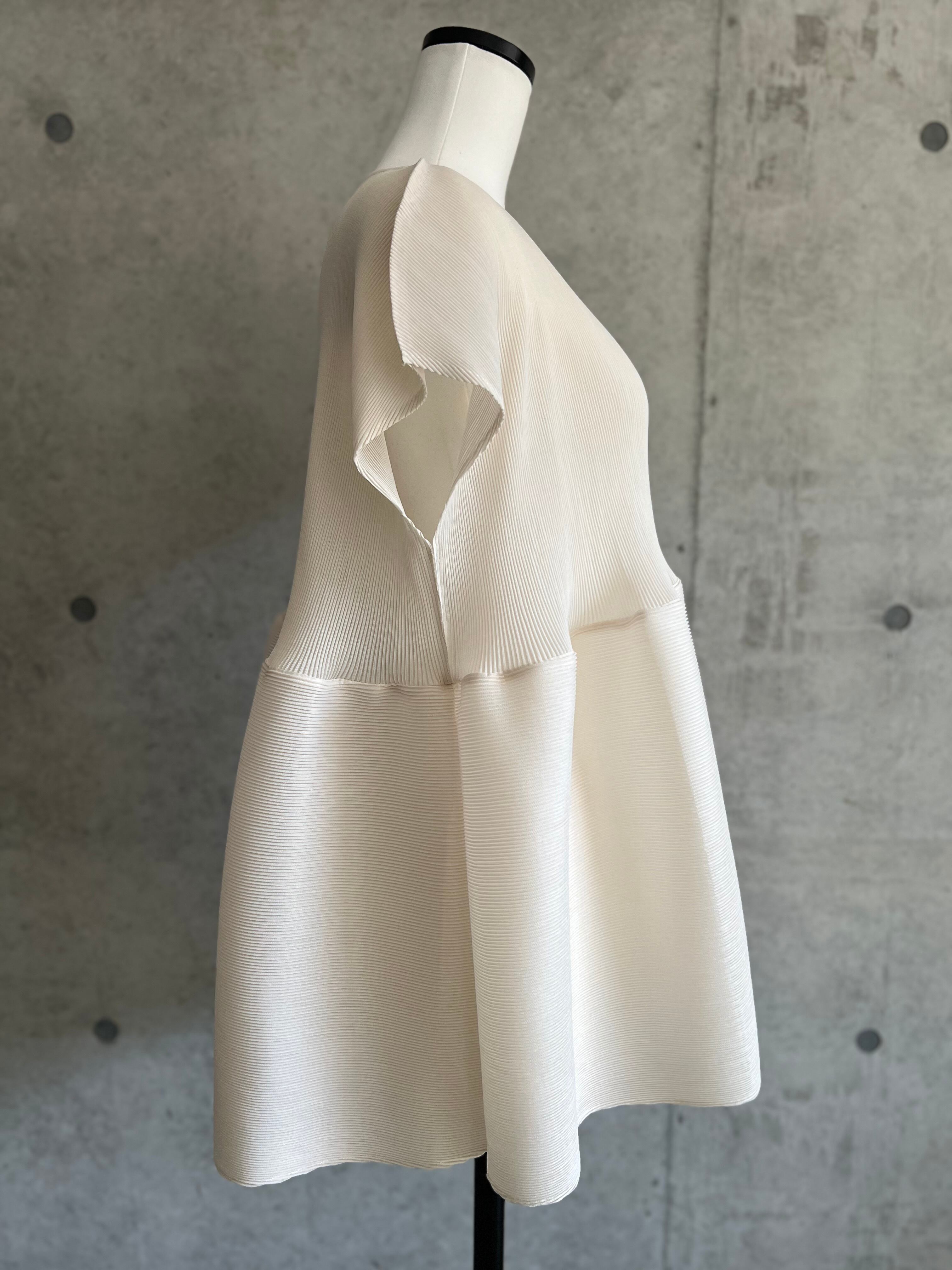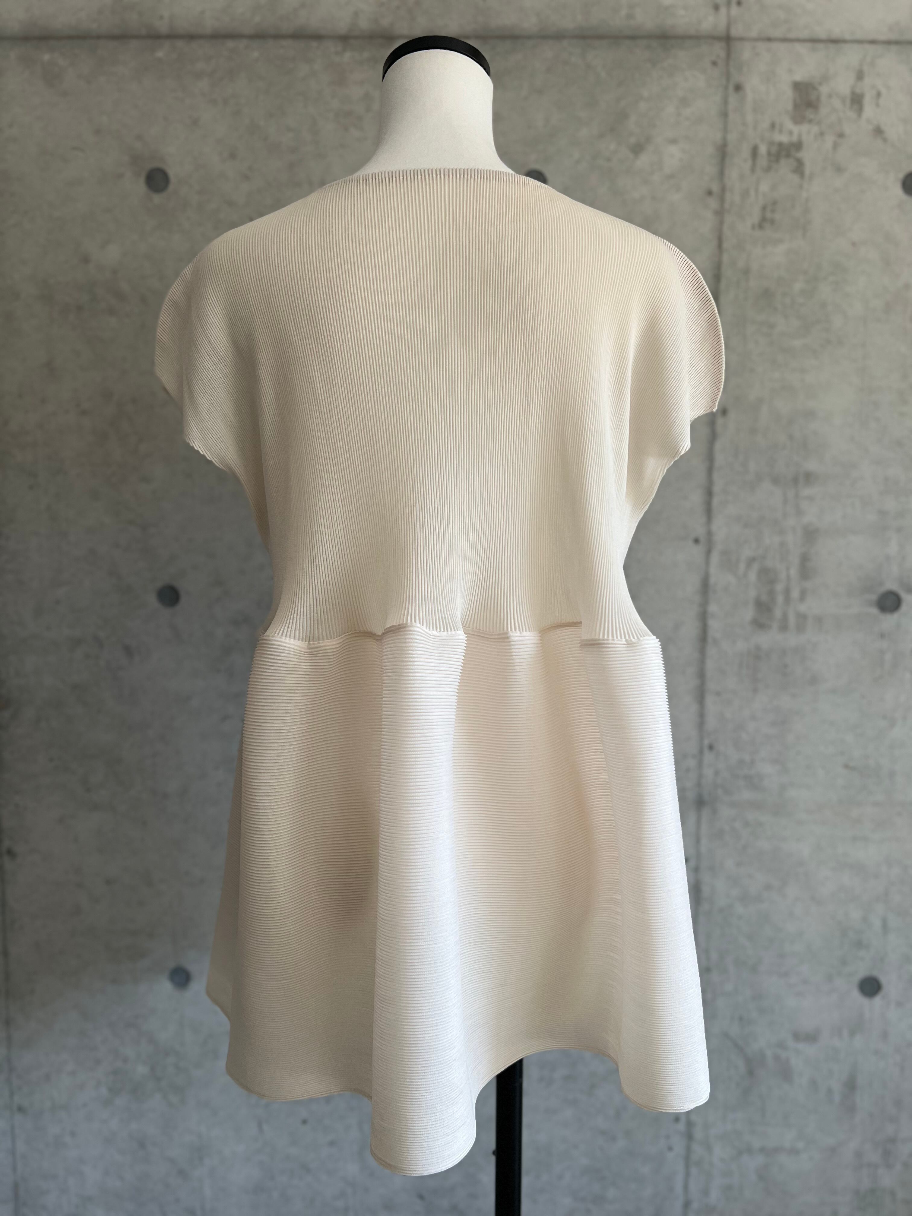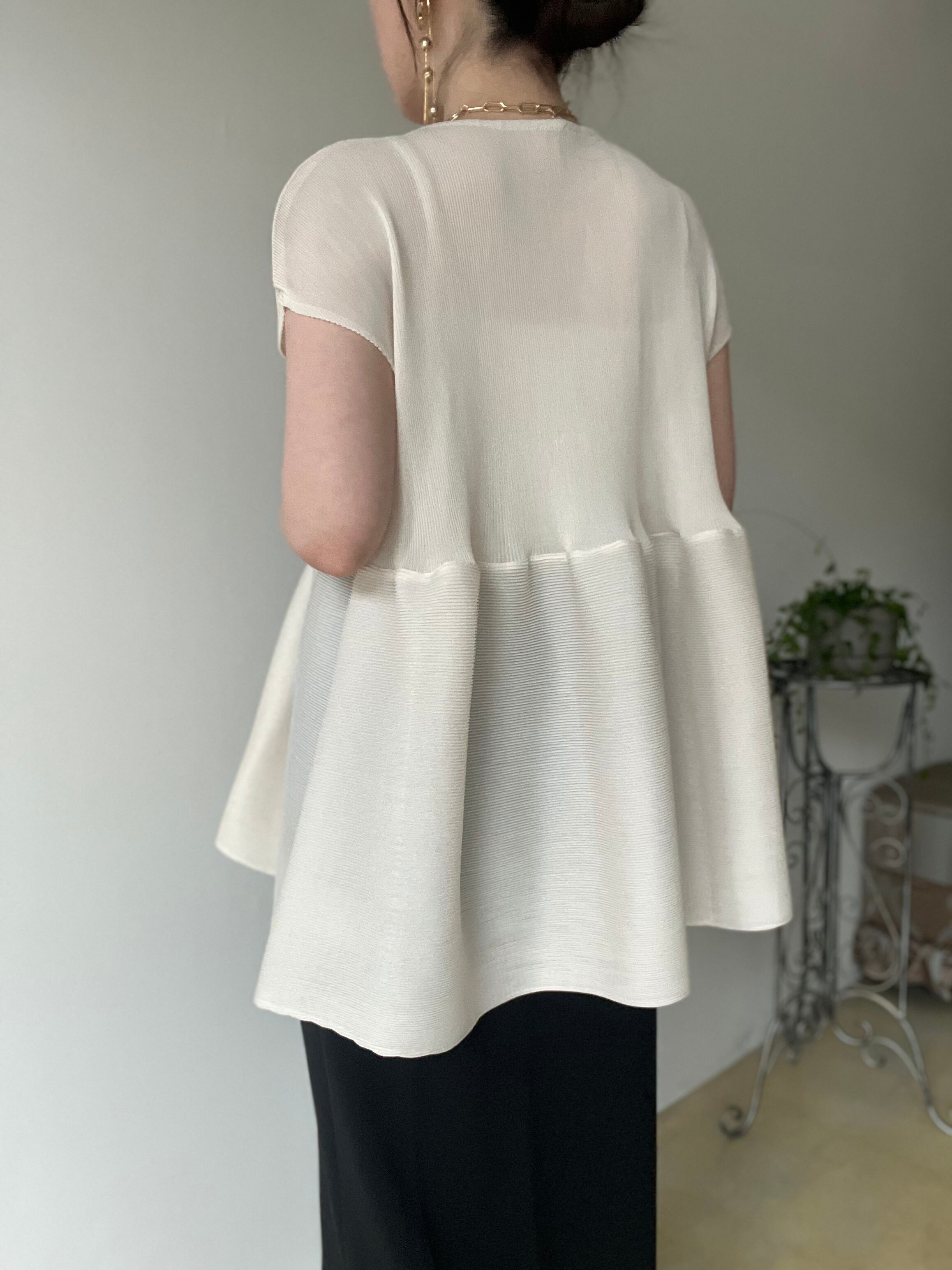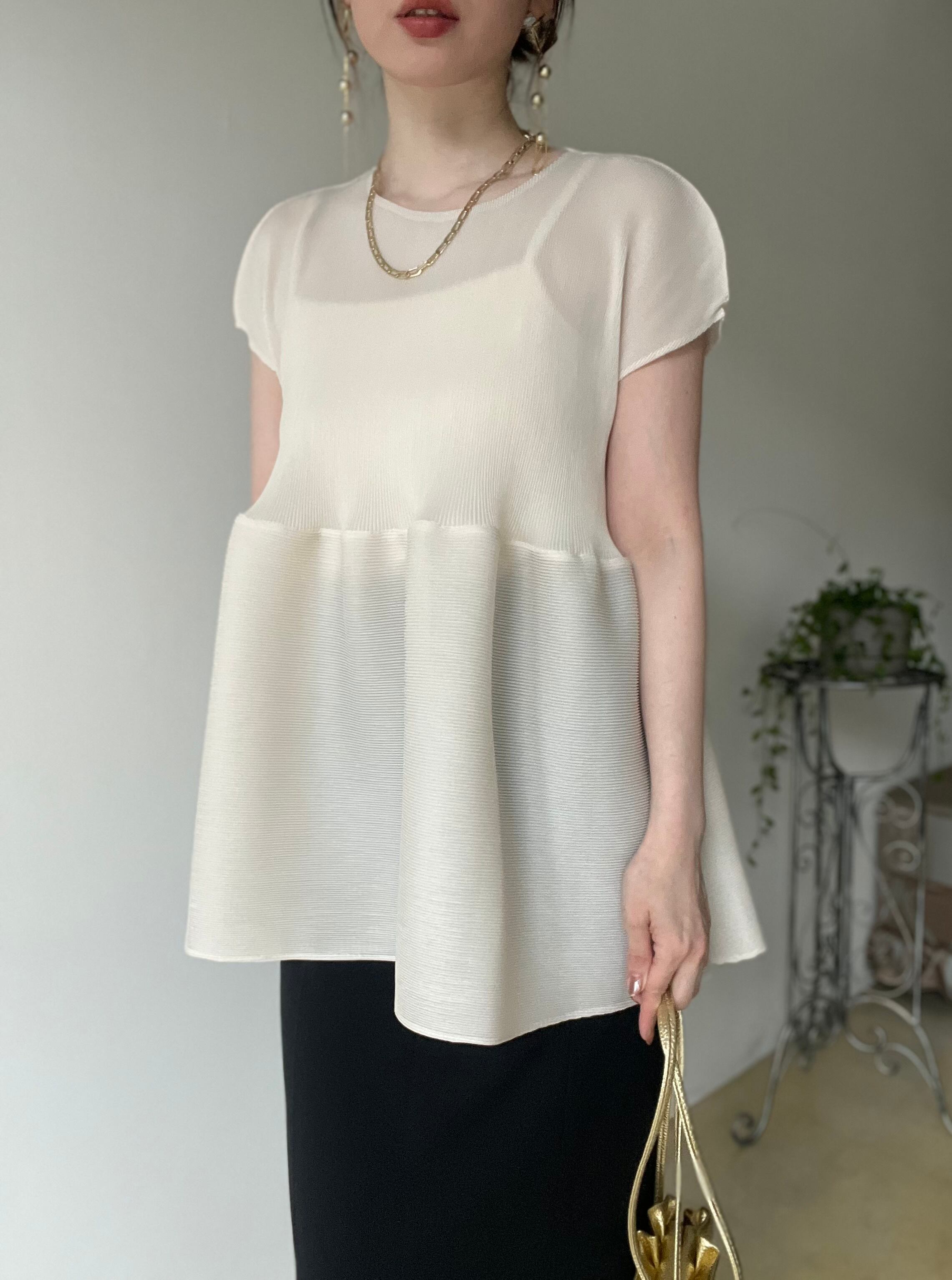【即納】ペプラム切り替えプリーツトップス【アイボリー】