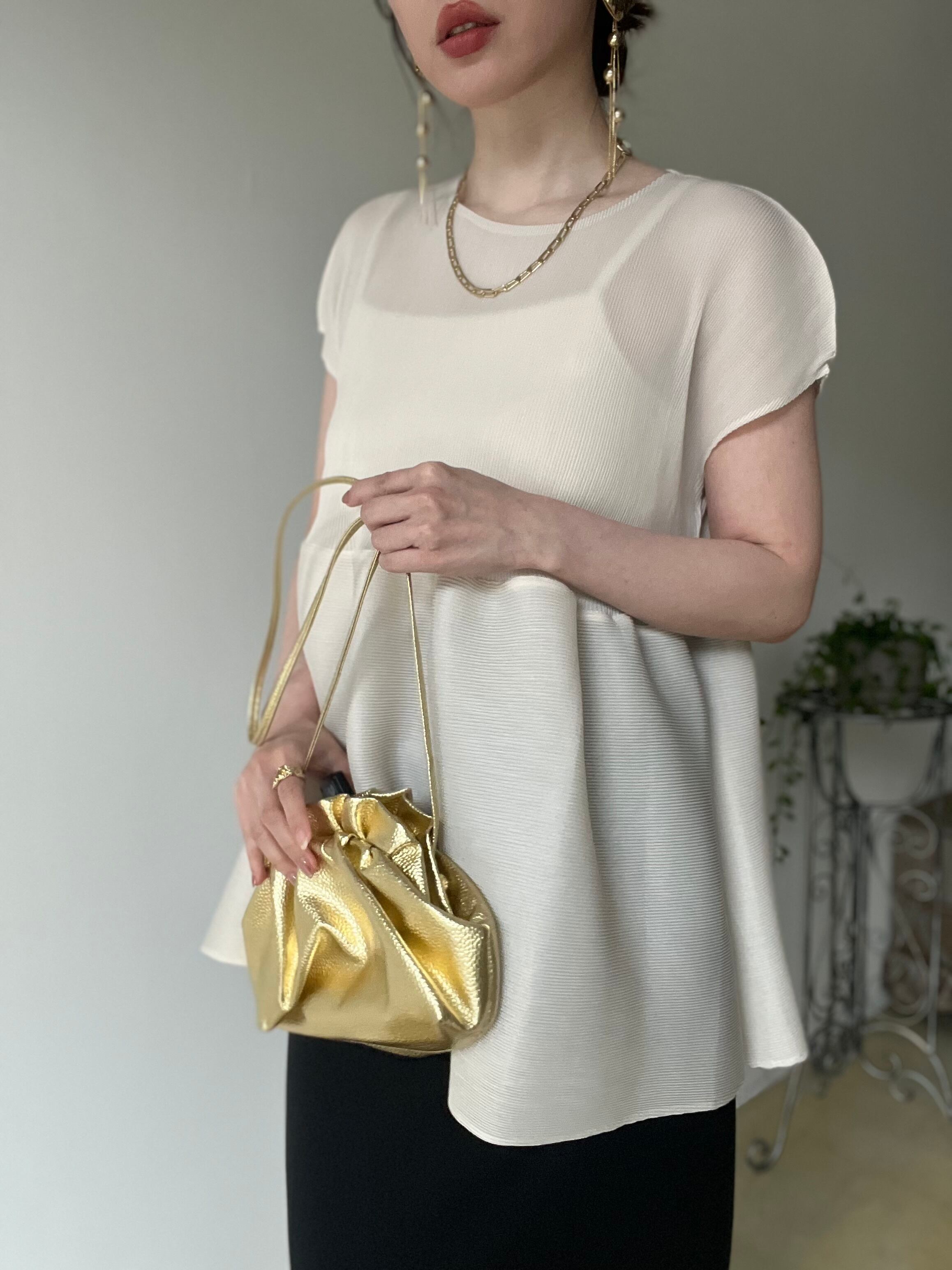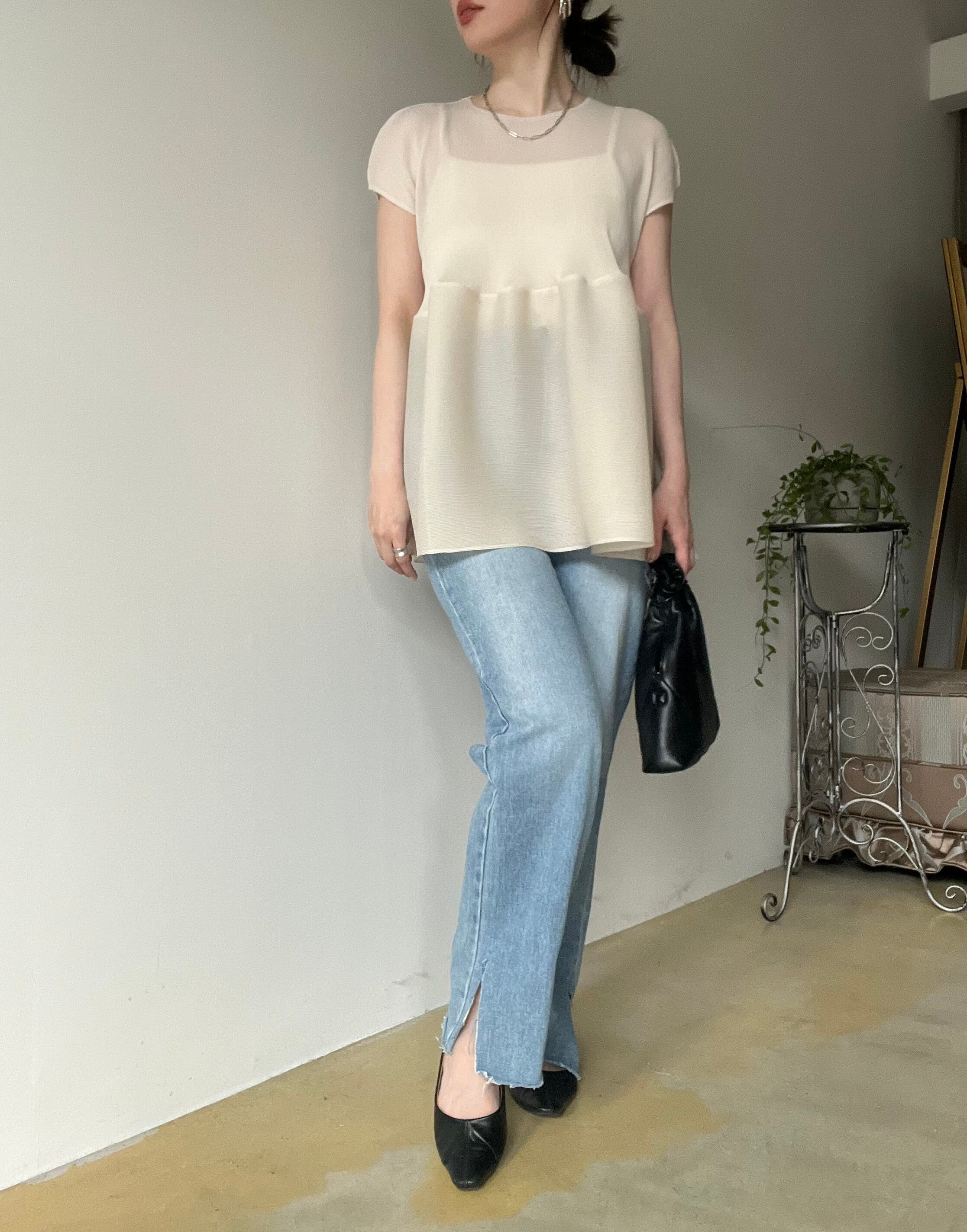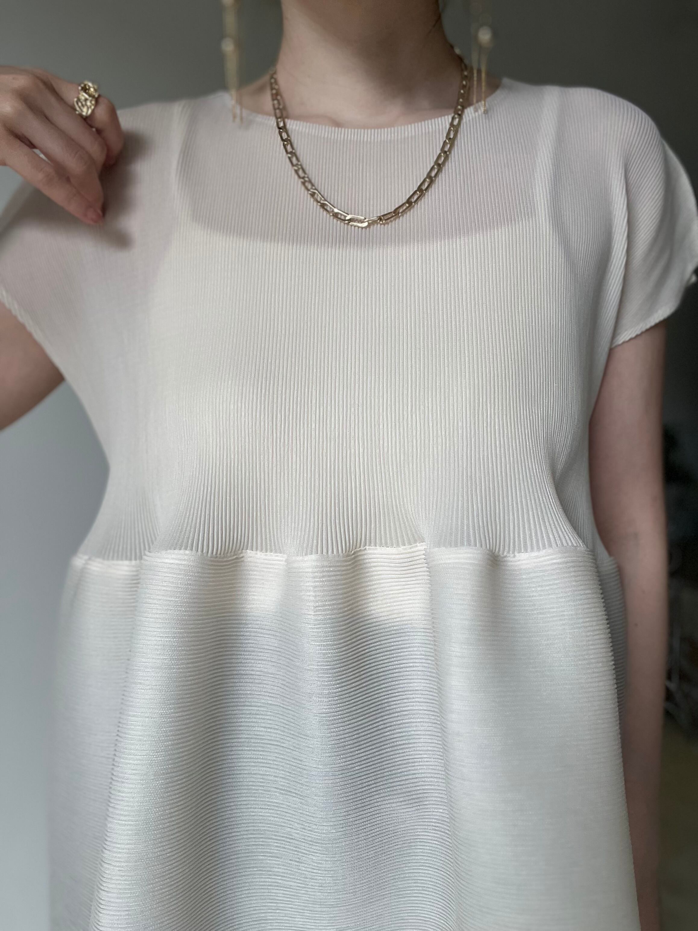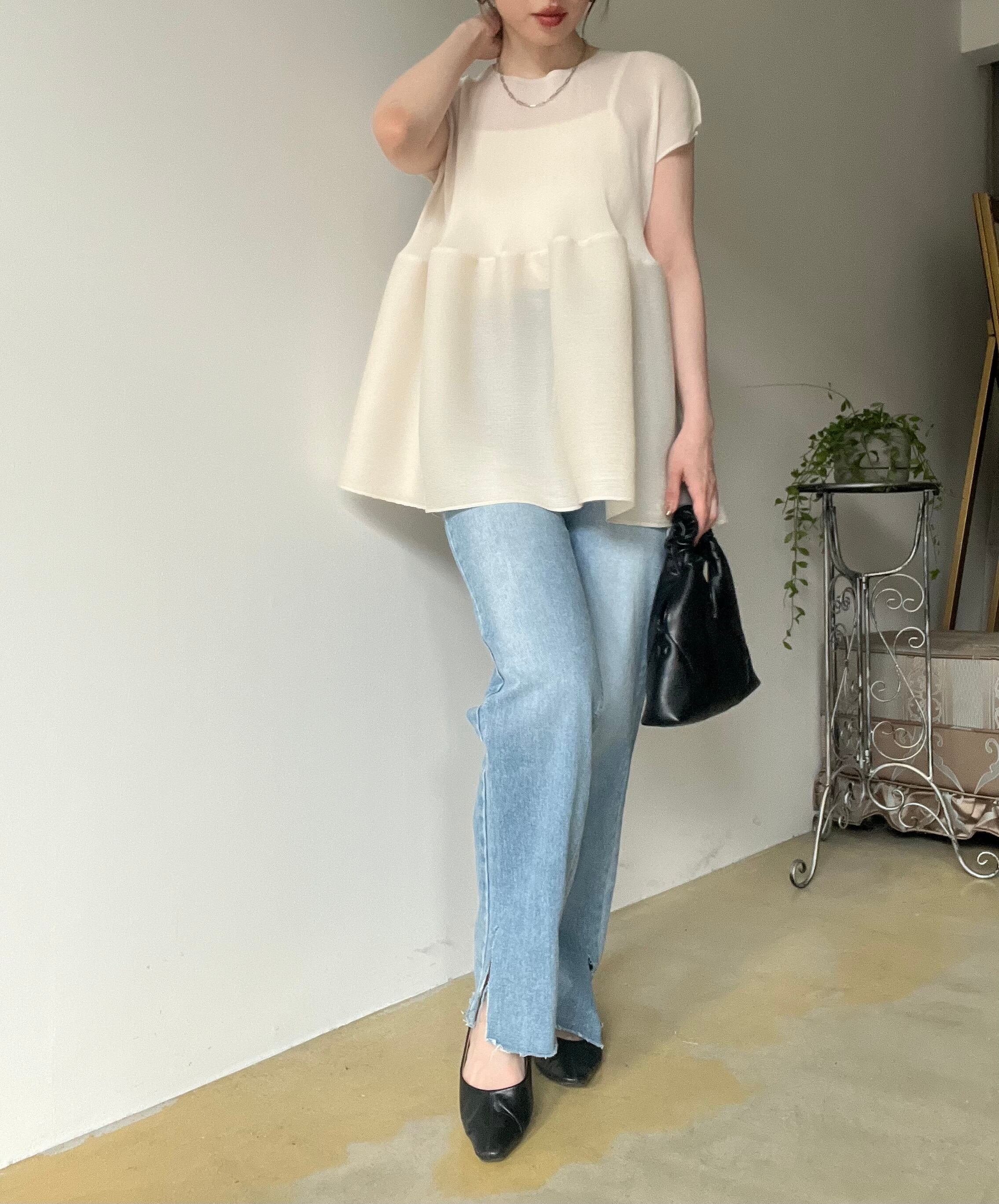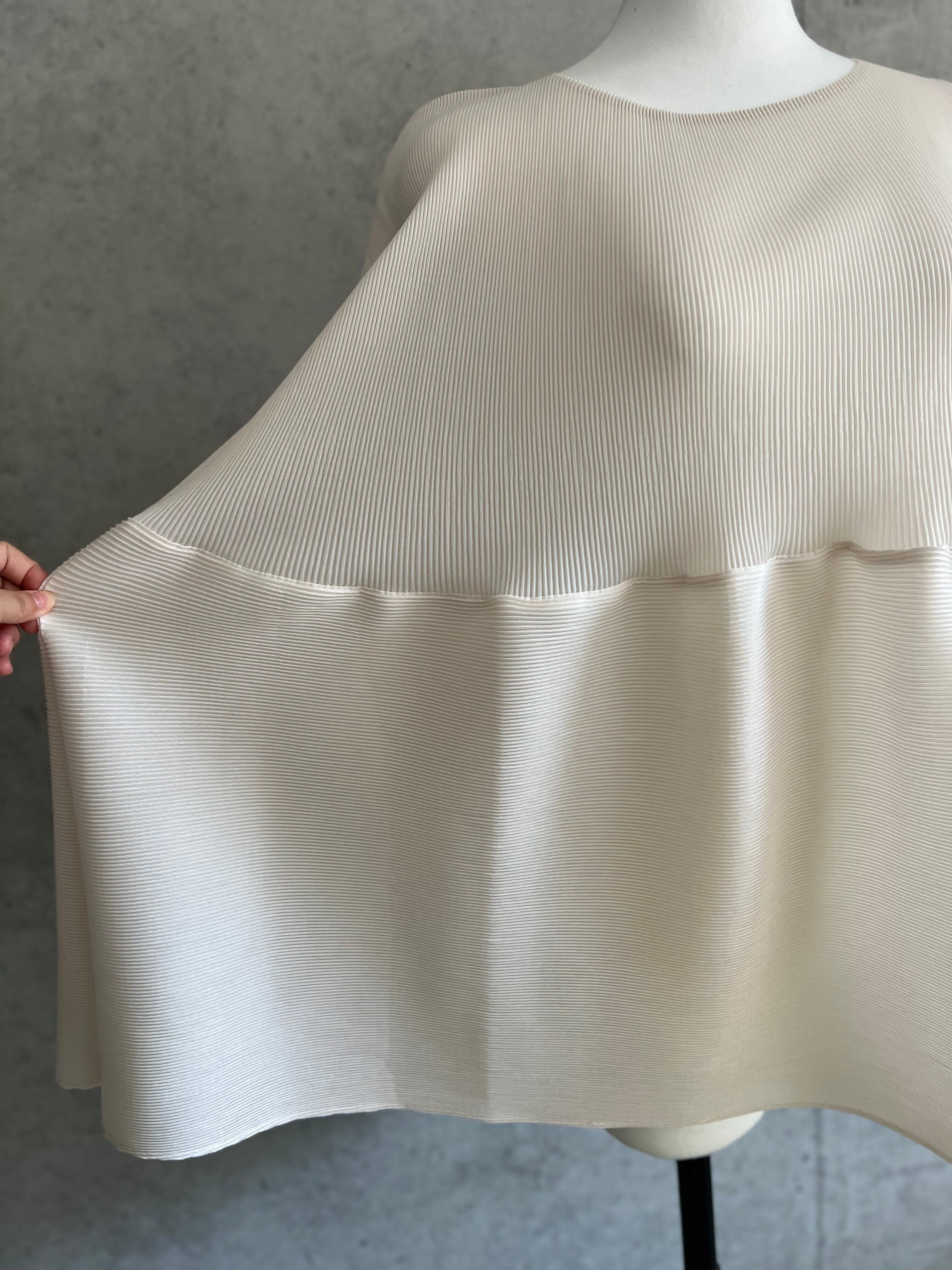 【即納】ペプラム切り替えプリーツトップス【アイボリー】