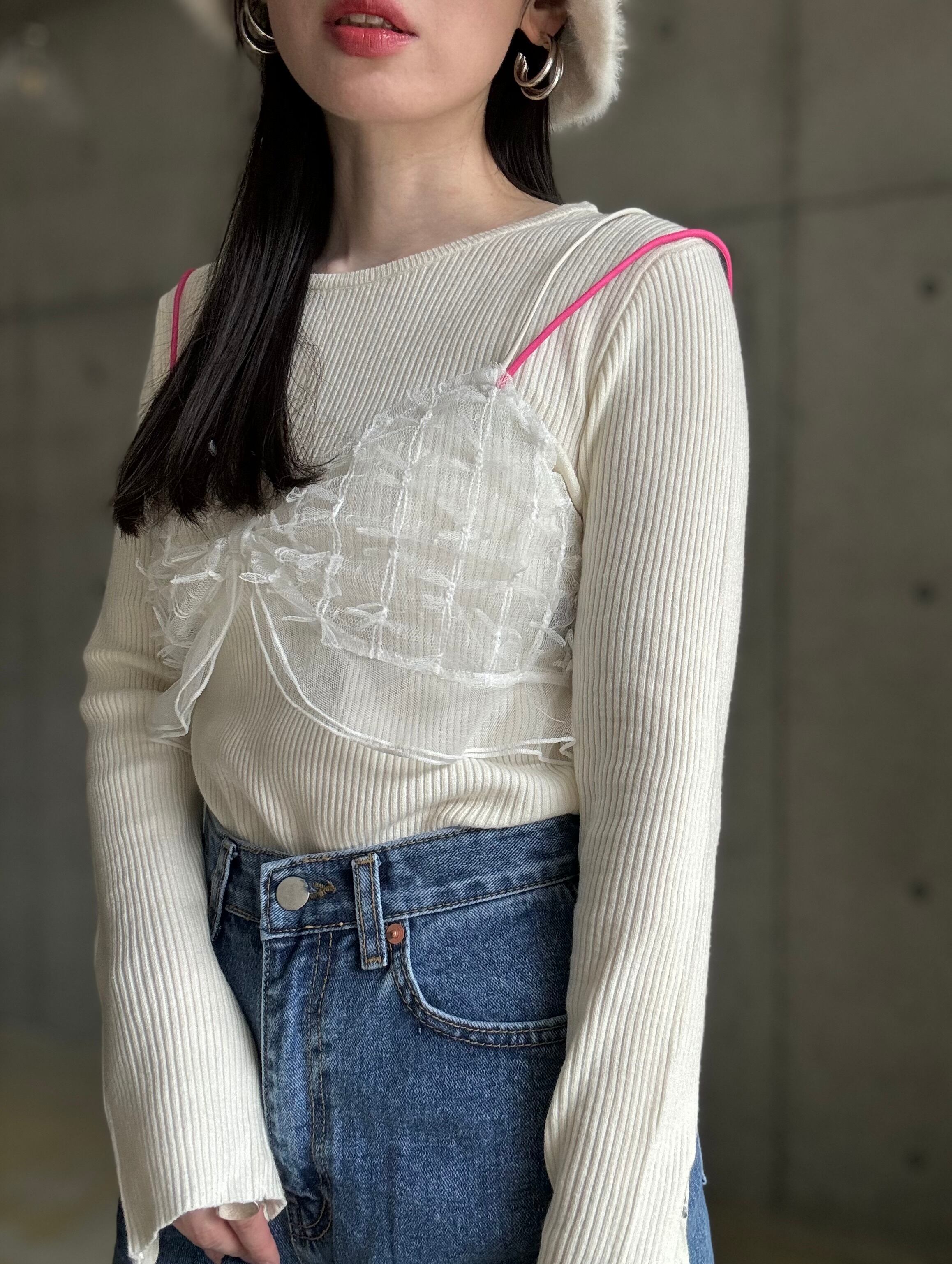 【即納】リボンチュール配色コードビスチェ【ホワイト】