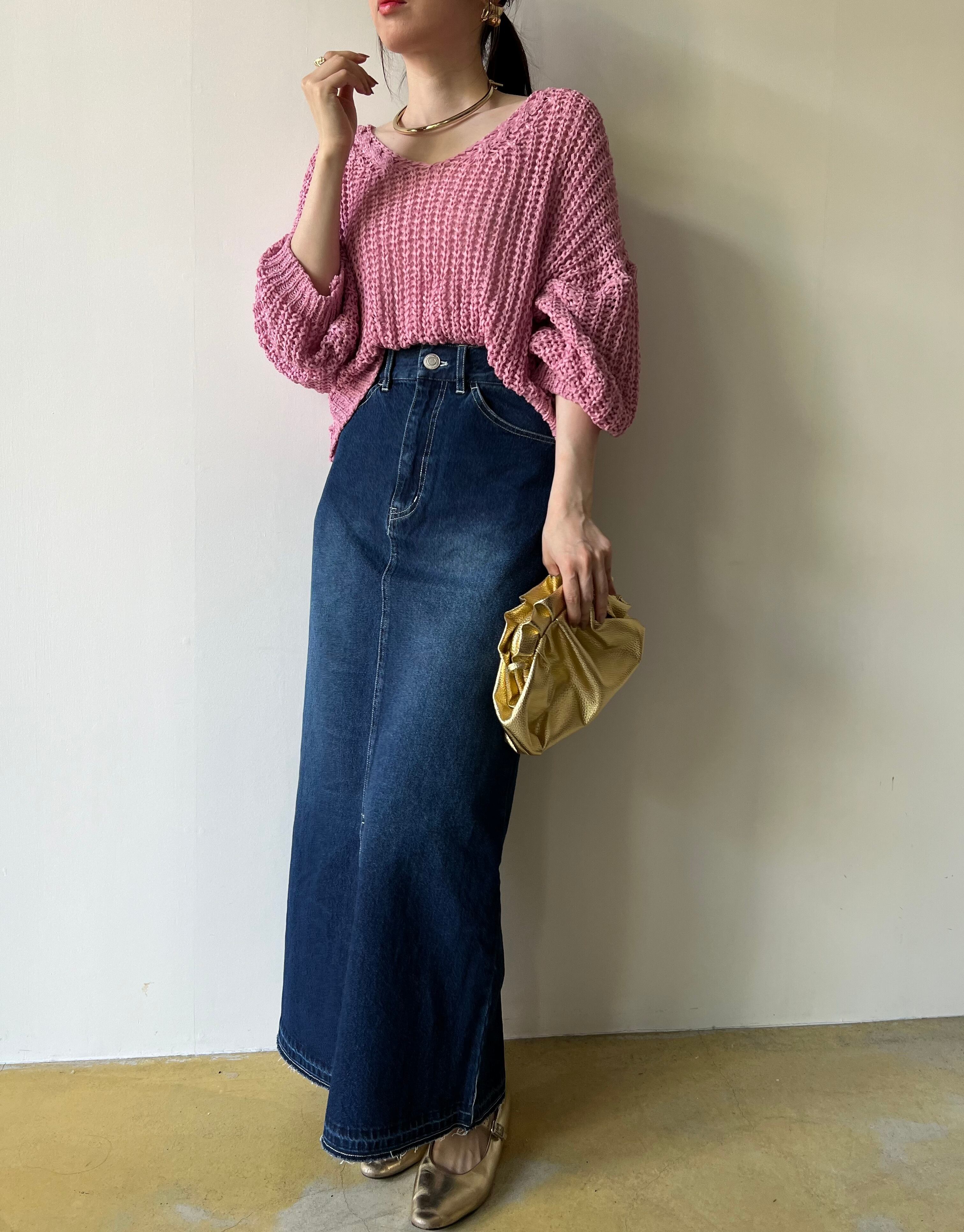 美シルエットなだけじゃなく、着回しのしやすさも満点なオススメデニムスカートです✨
