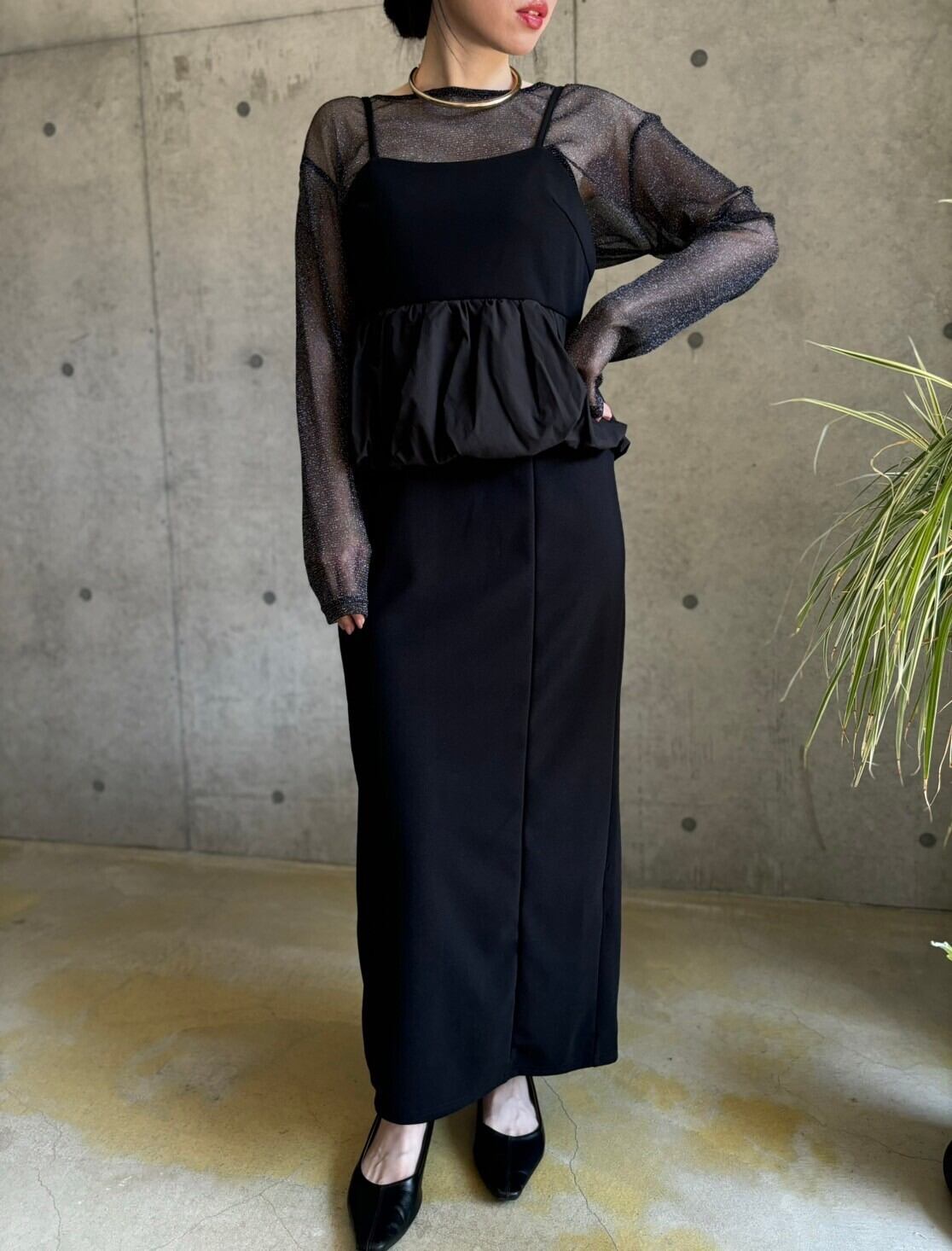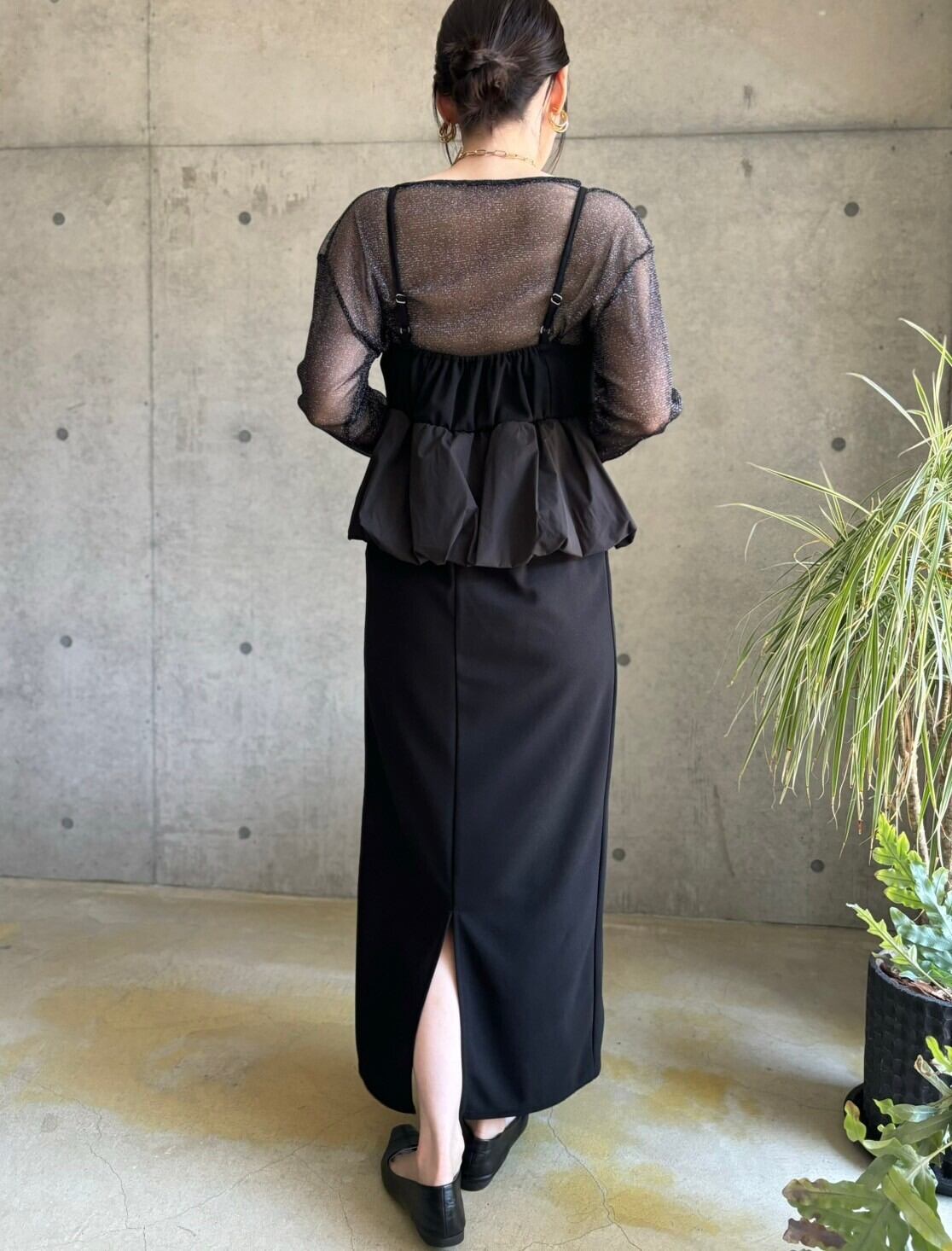 【即納】バルーンペプラムキャミワンピース【ブラック】
