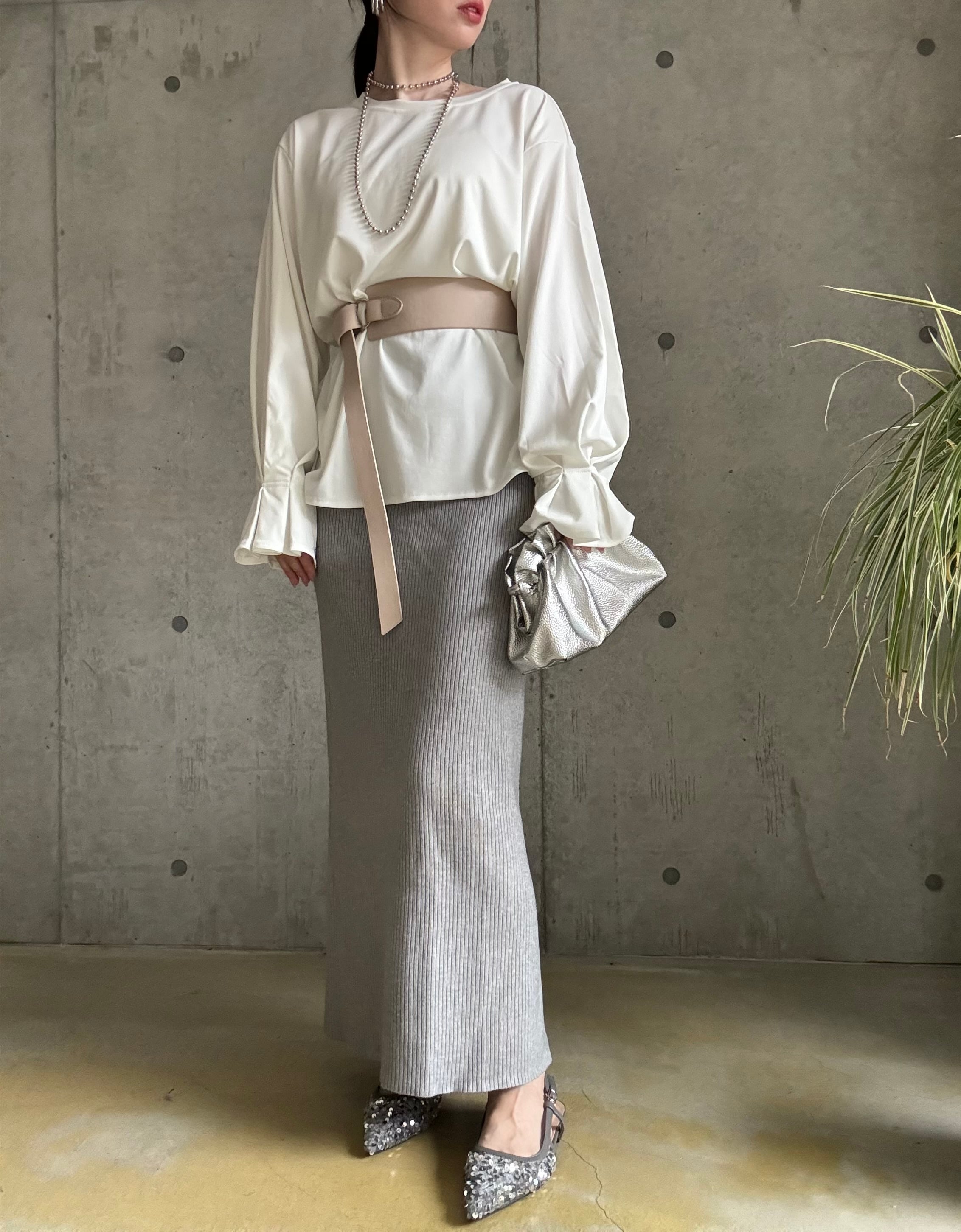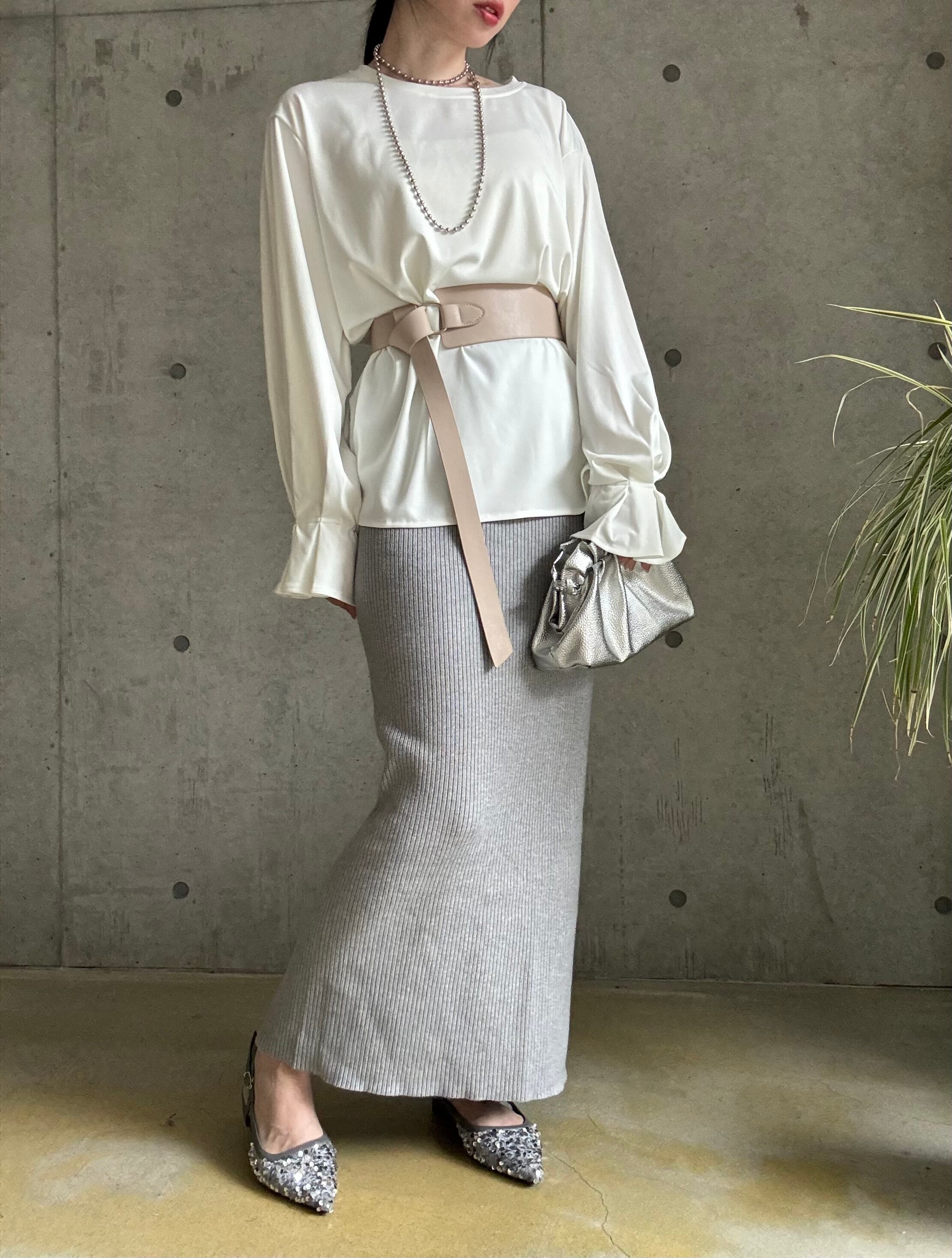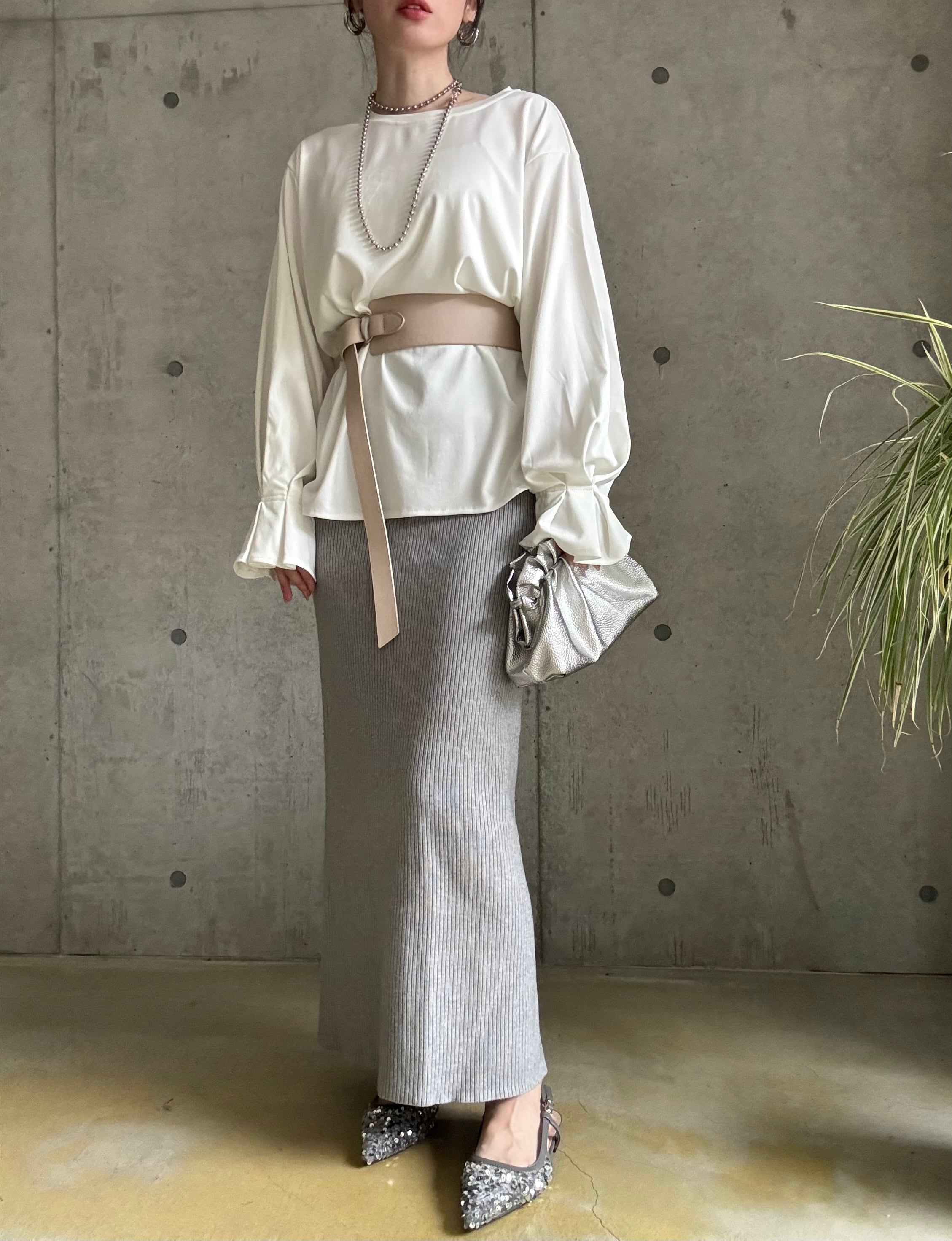 ボリュームのあるニットやオーバーサイズのトップスと合わせるのがオススメ♪