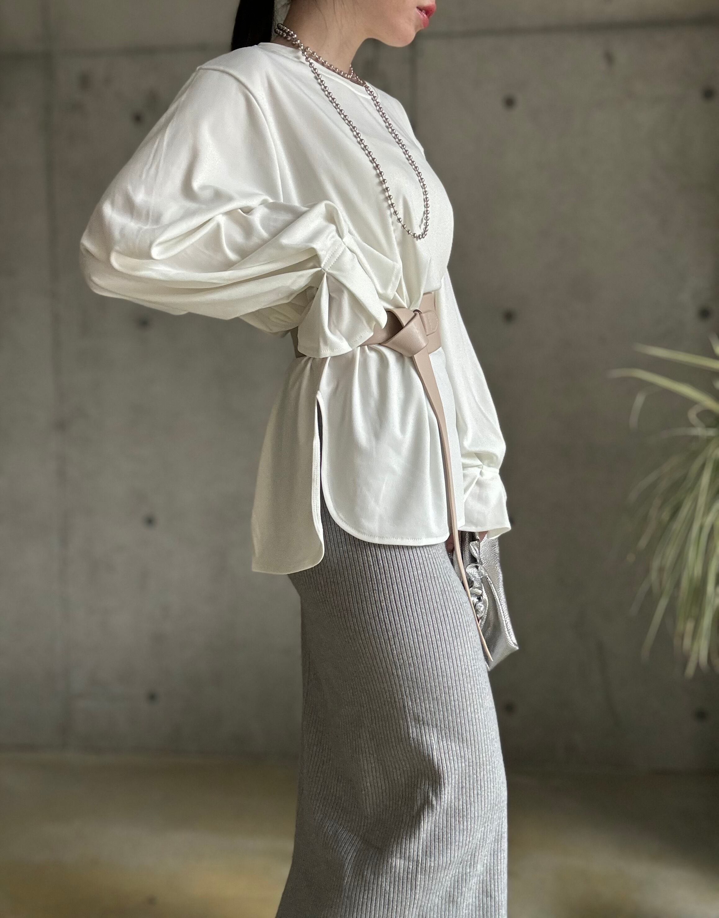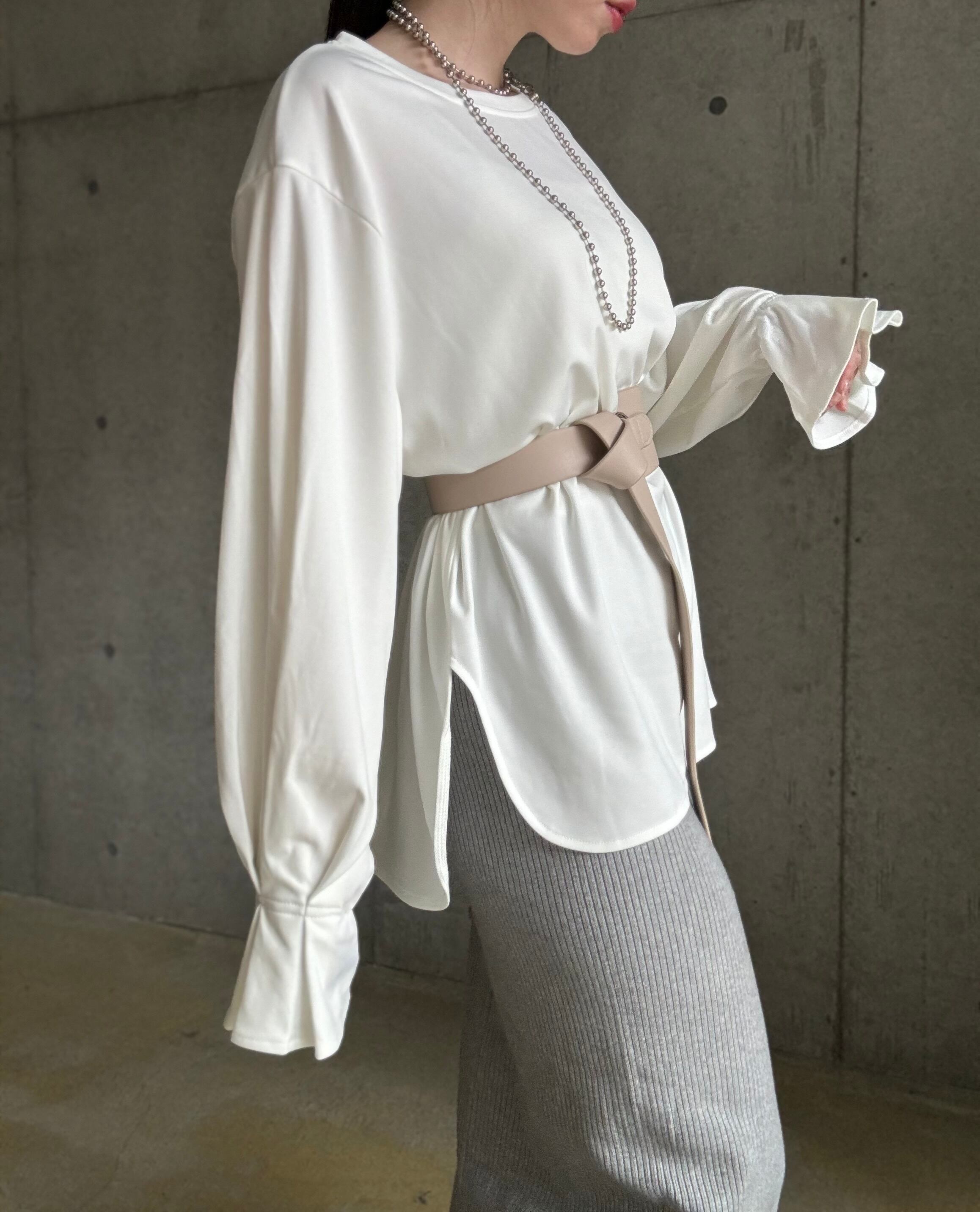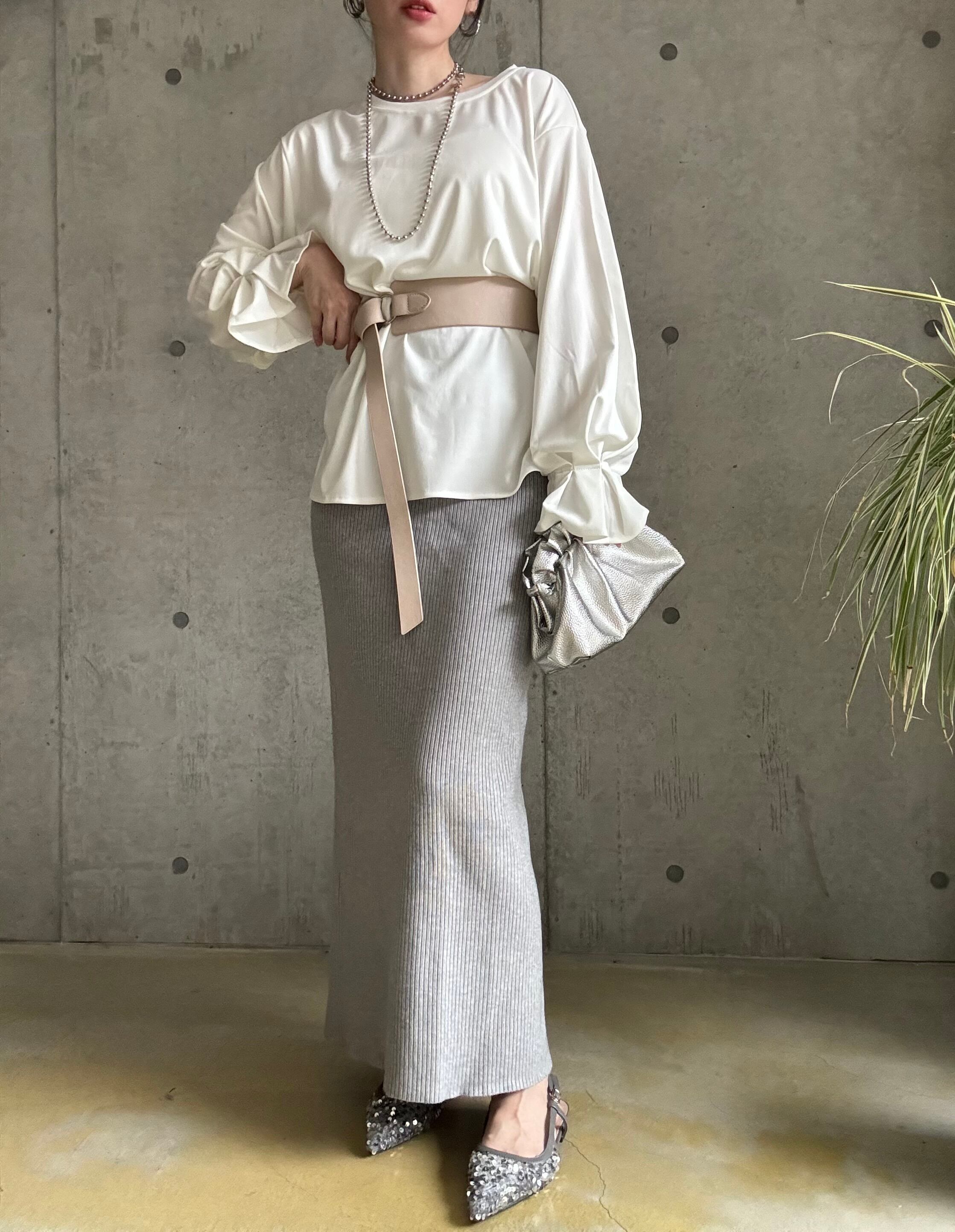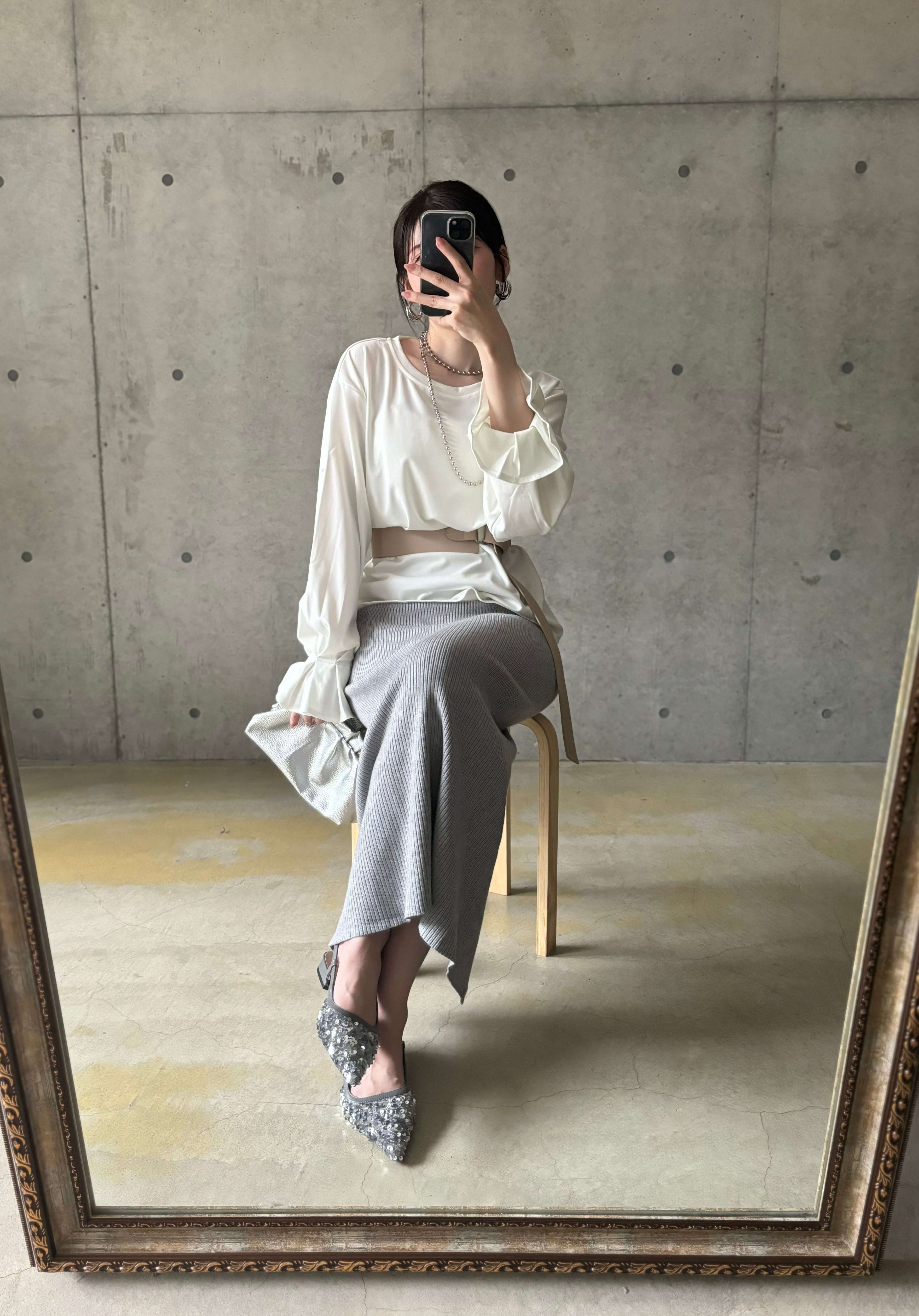 ボリュームのあるニットやオーバーサイズのトップスと合わせるのがオススメ♪