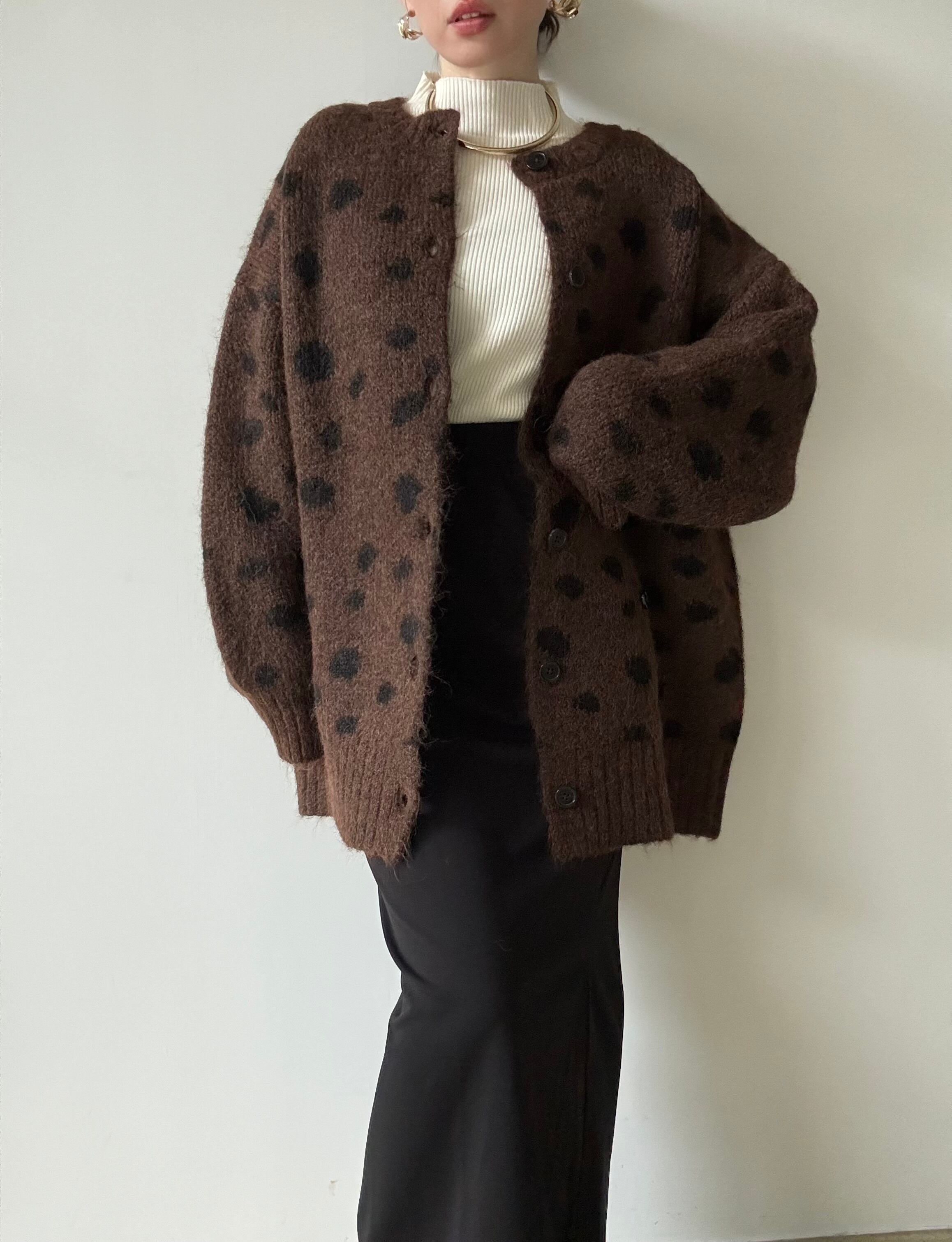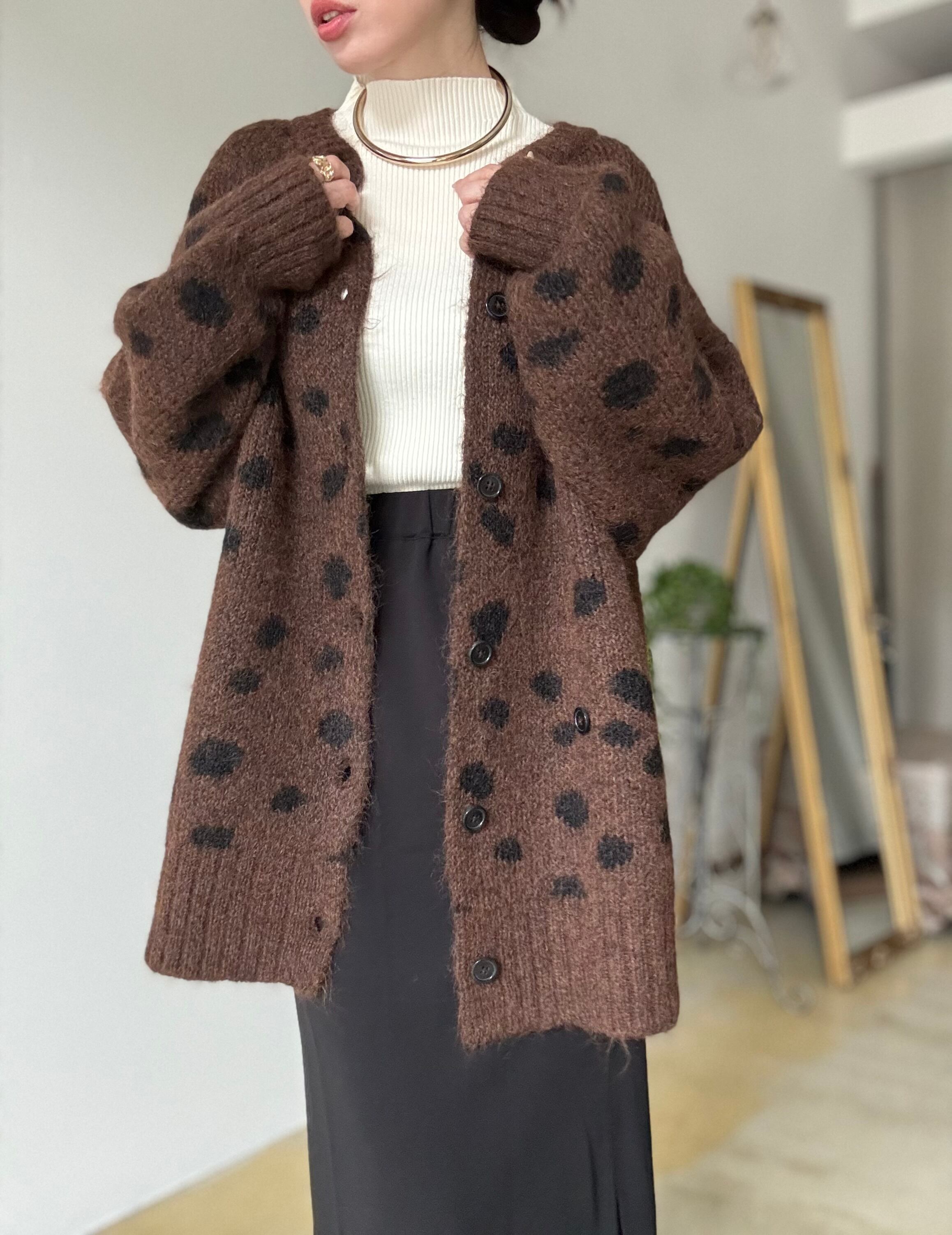 大人可愛いダルメシアン柄がポイント♡ゆったりシルエットだけど着膨れしない、大人のニットカーデ✨