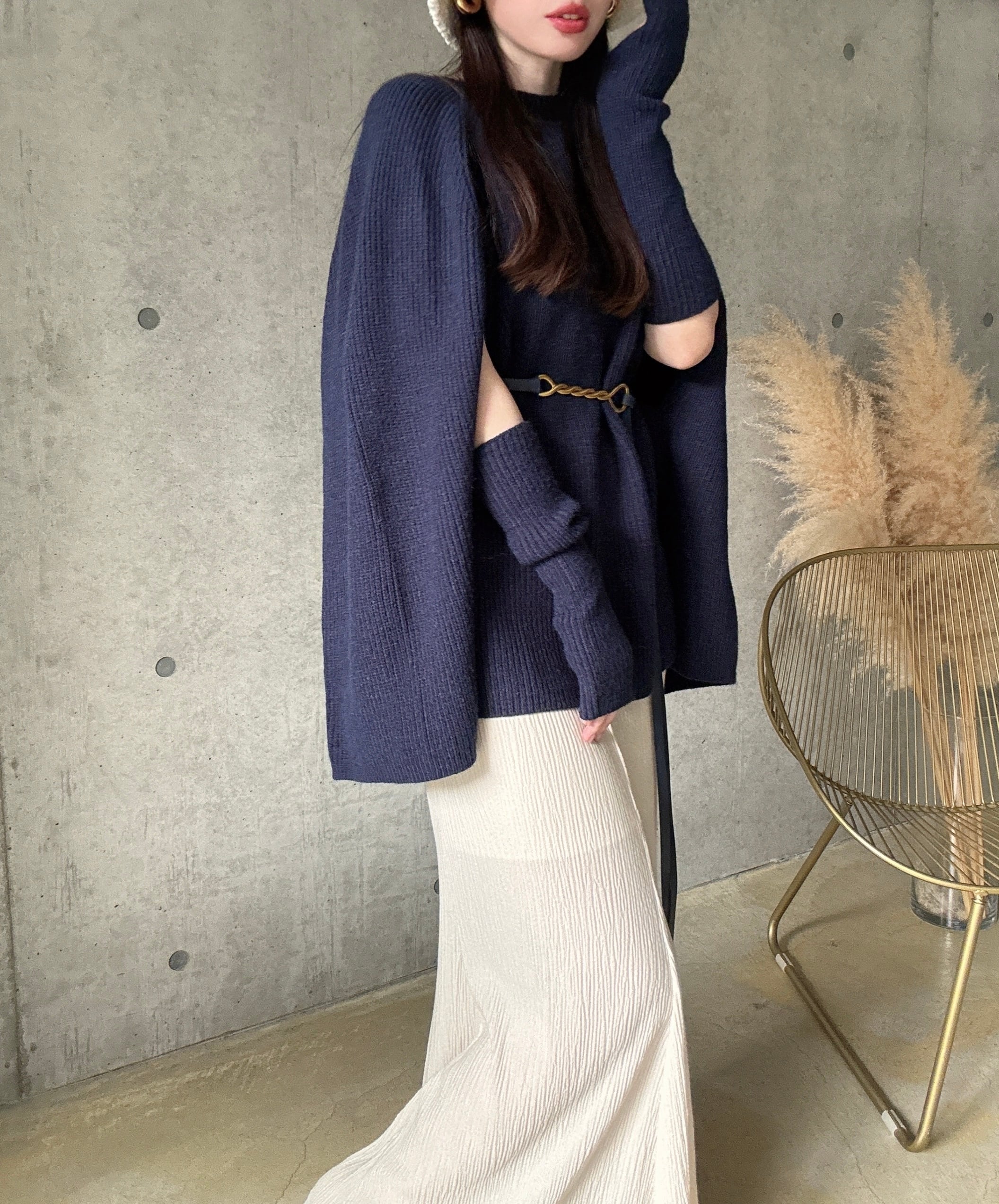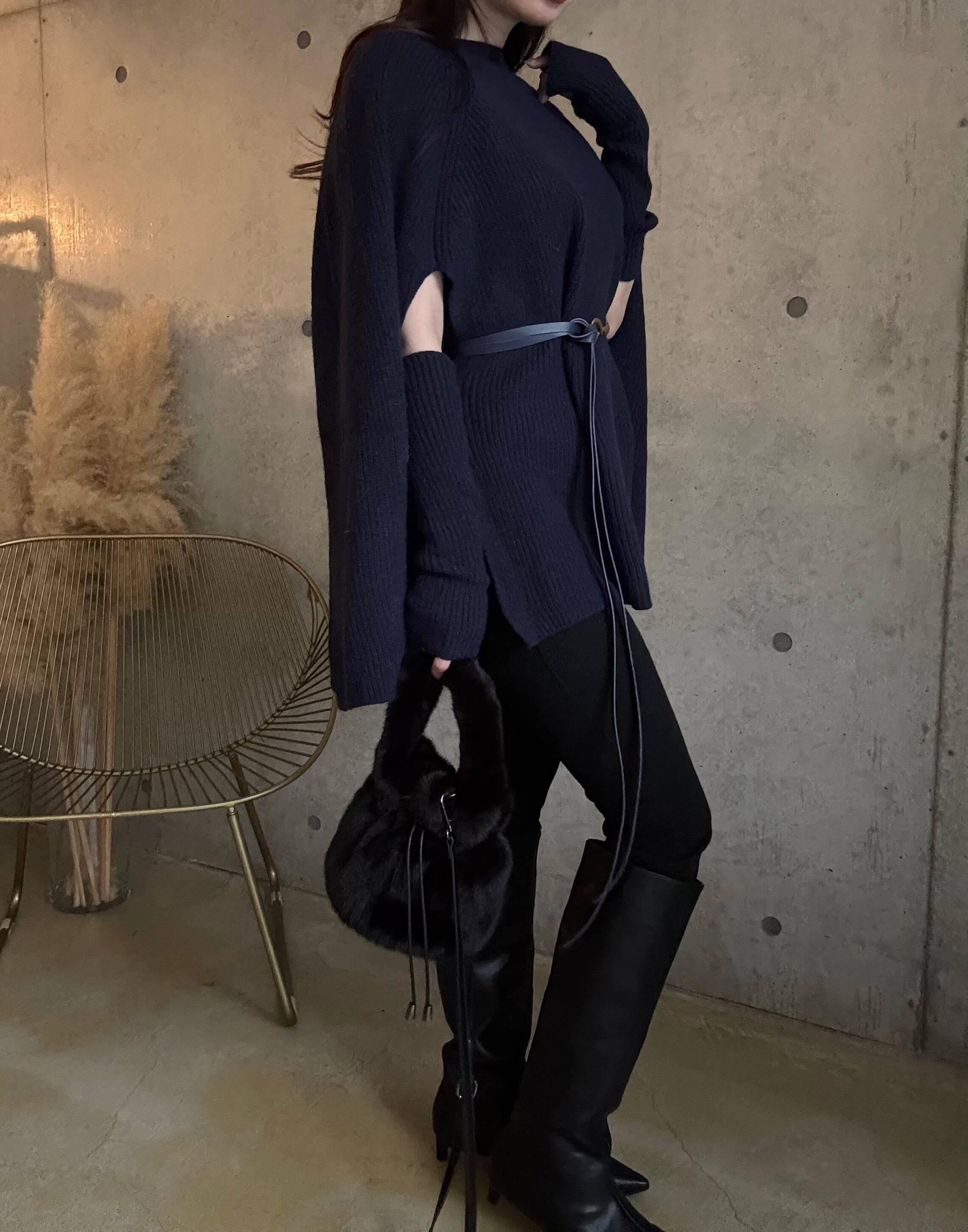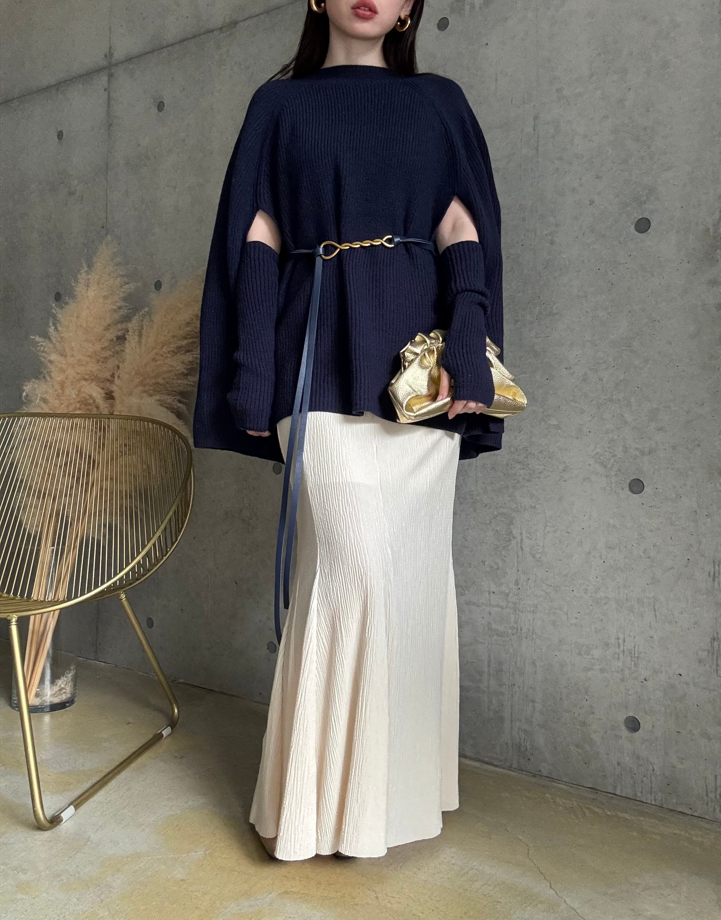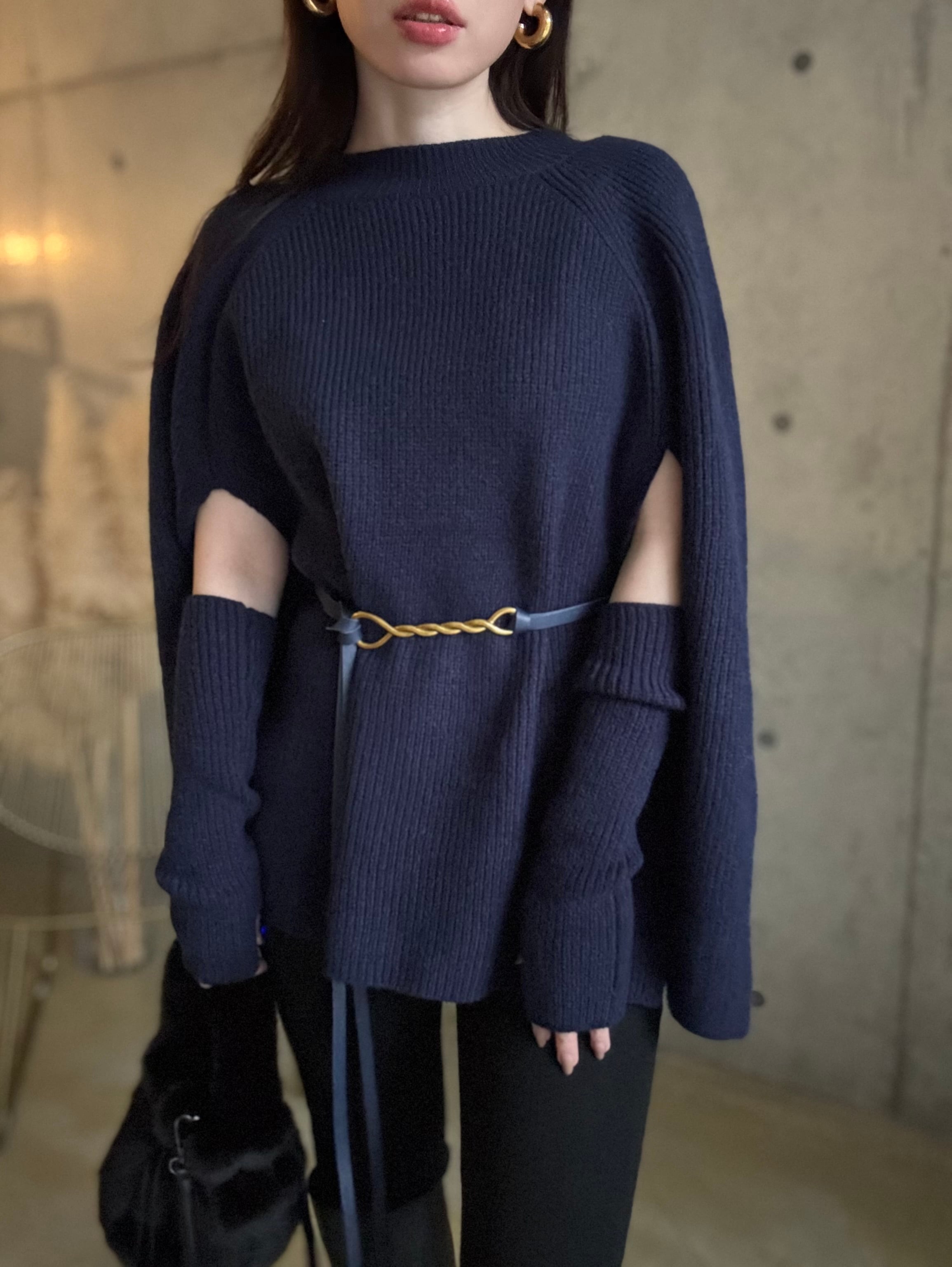 【即納】ケープ風ニット(アームウォーマー+ベルトset)【ネイビー】