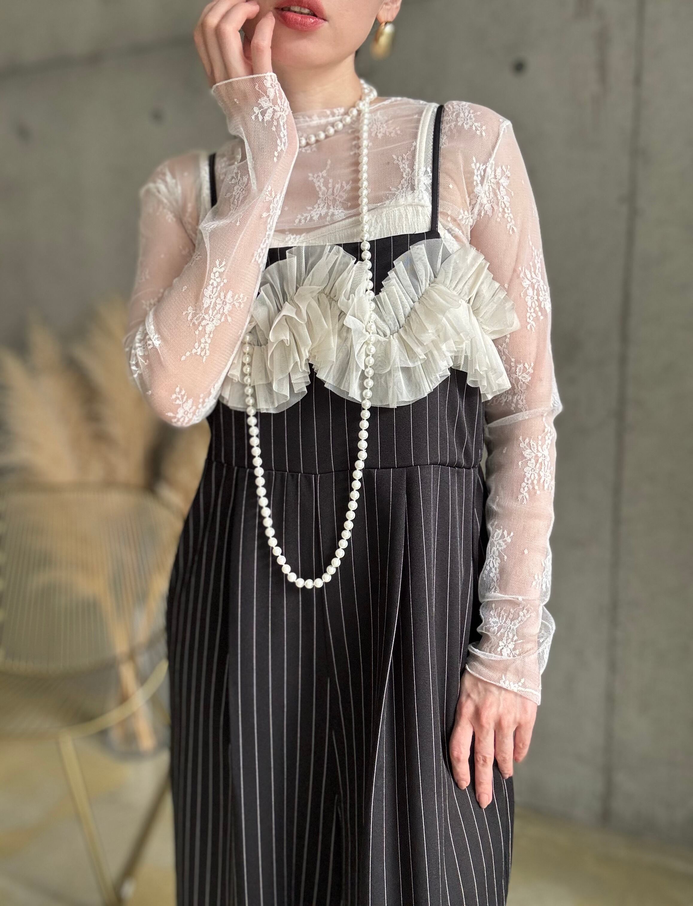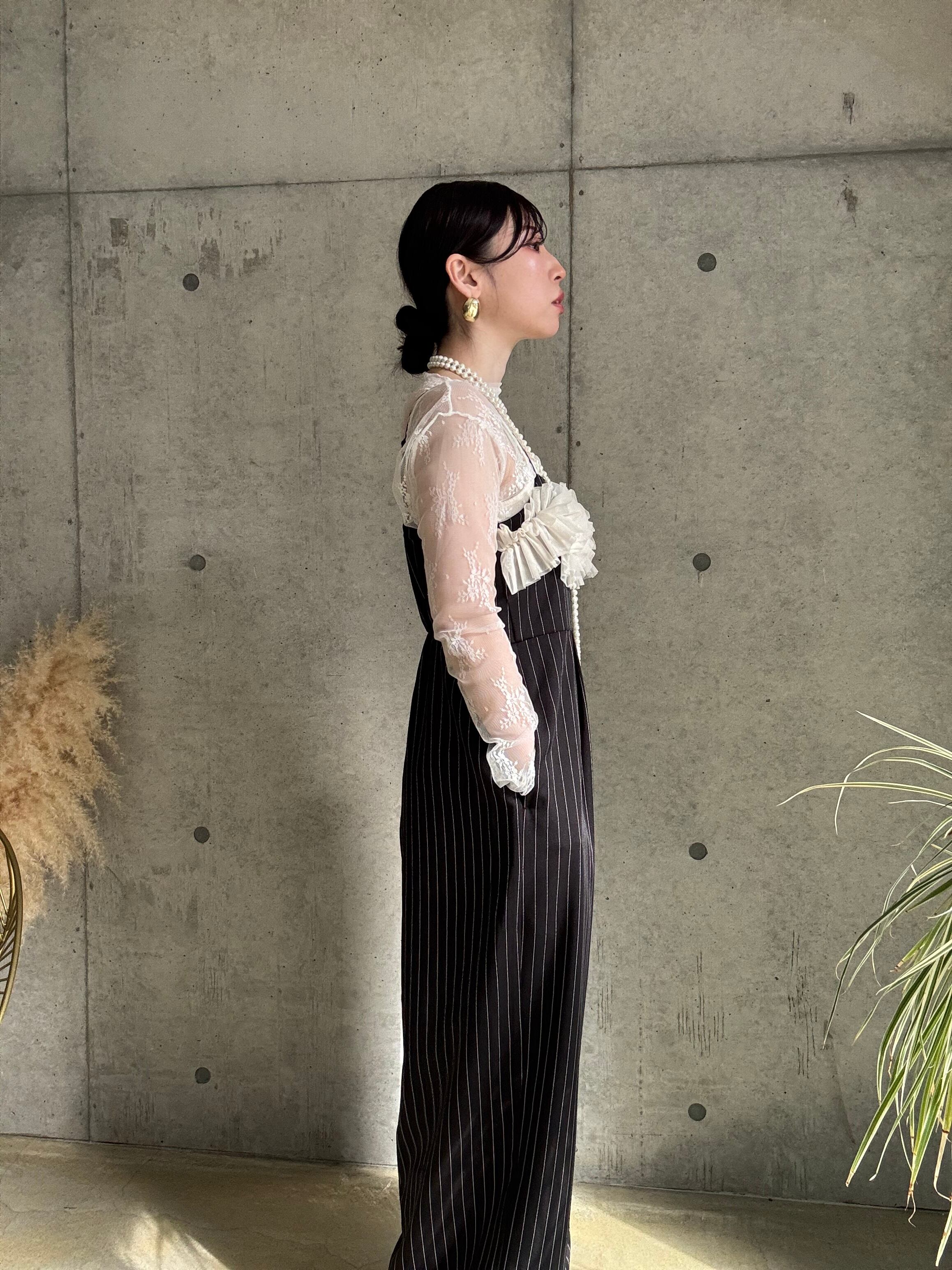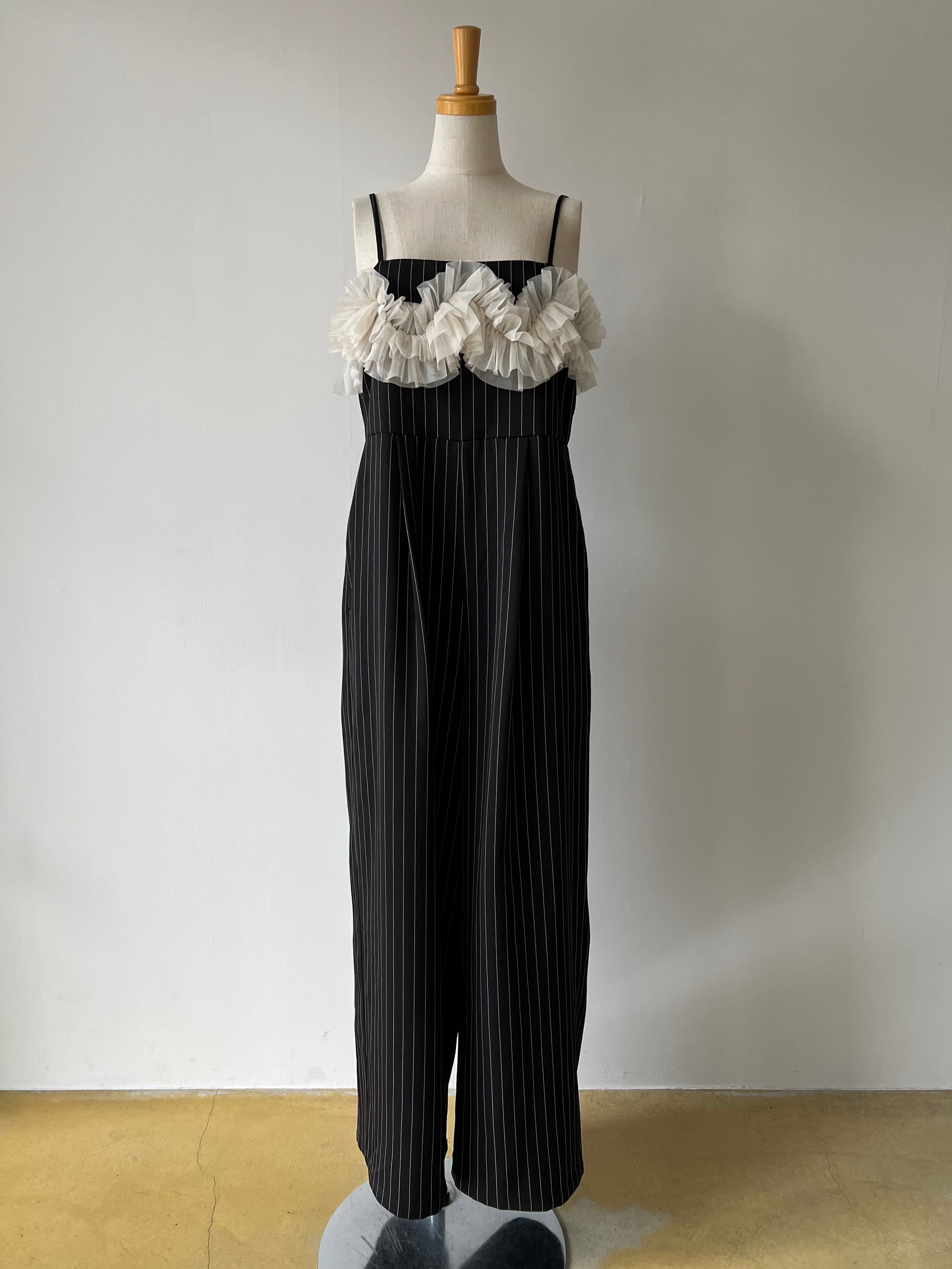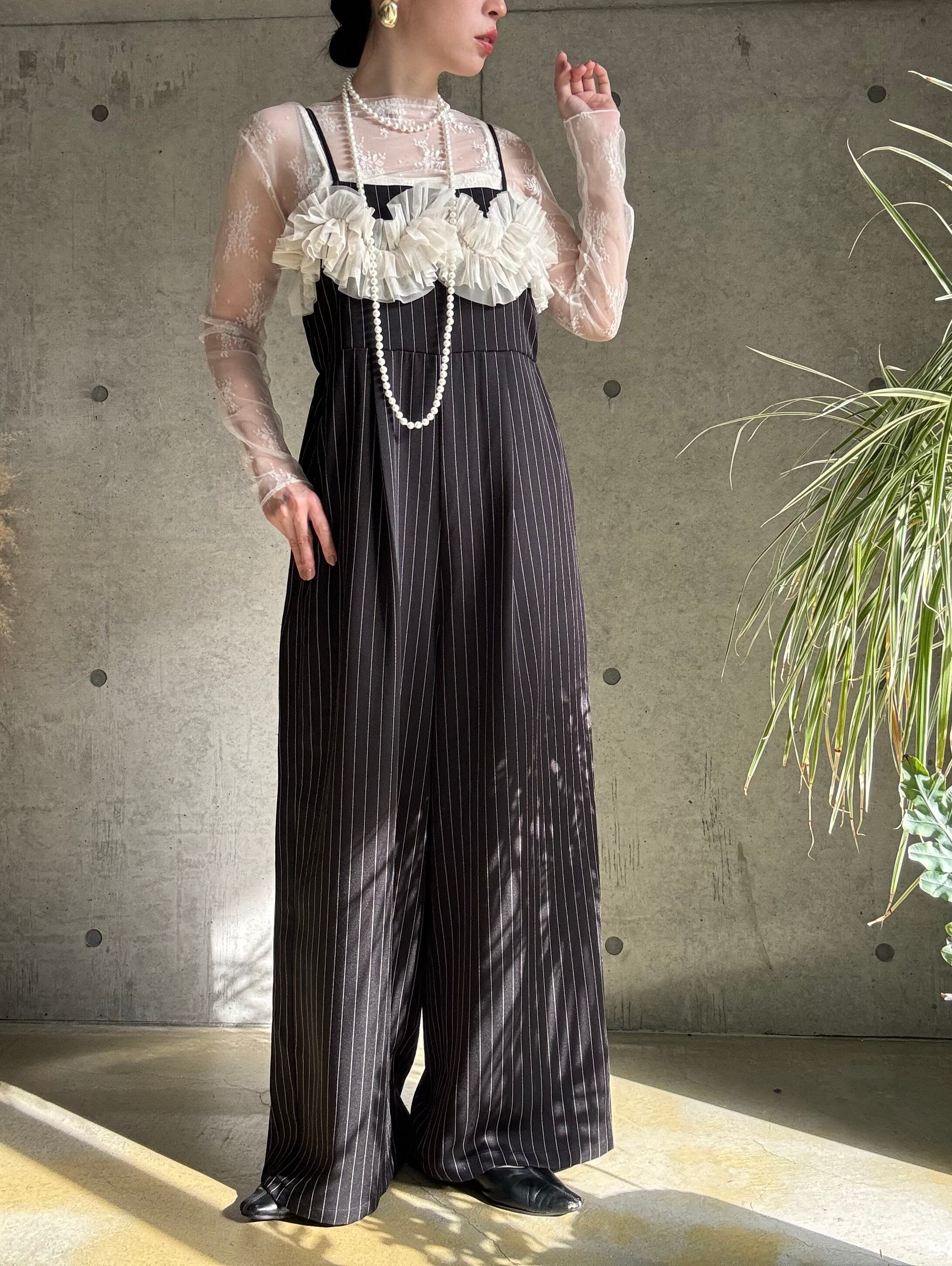 胸元のフリルが女性らしい華やかな印象のサロペット✨