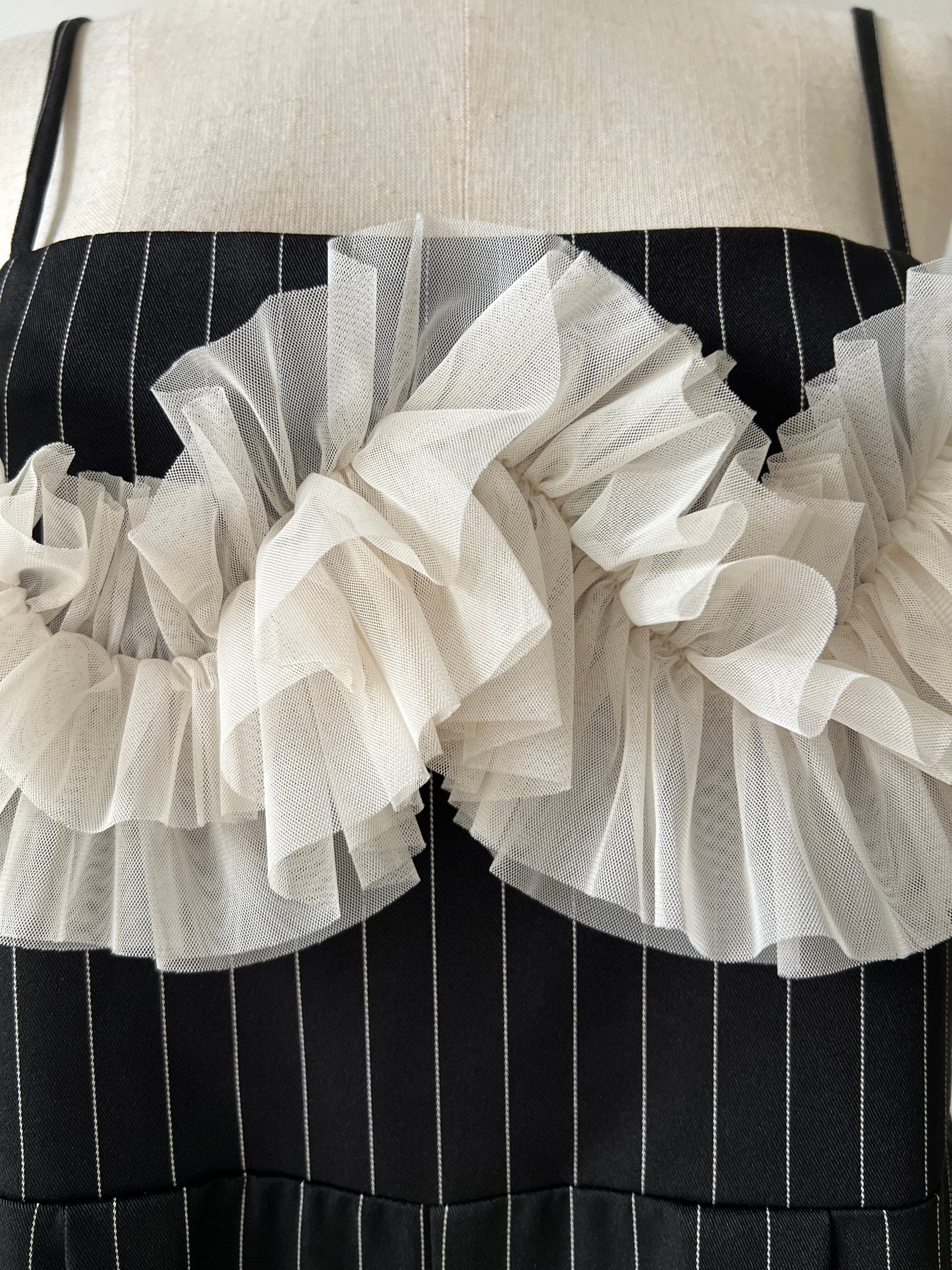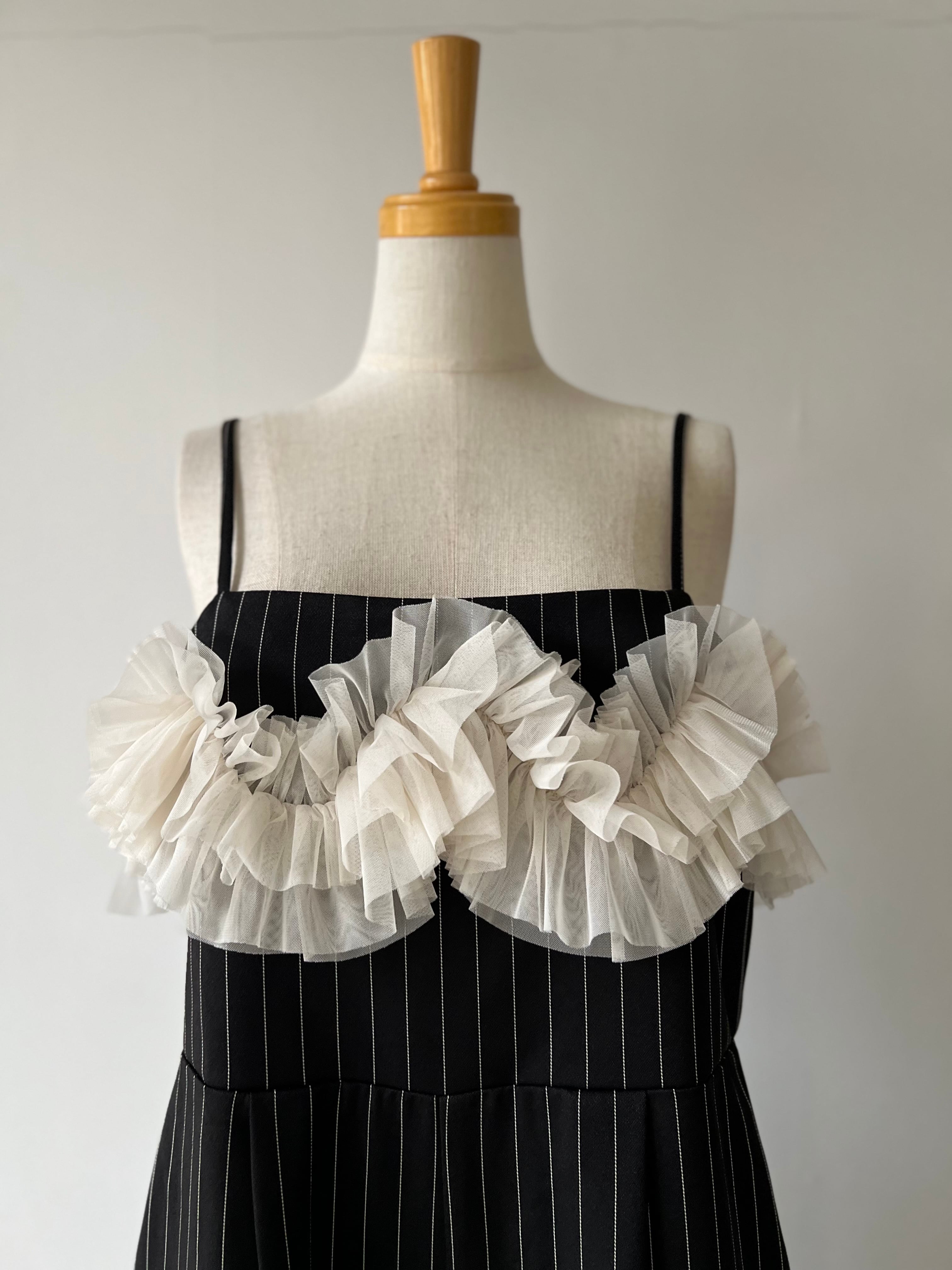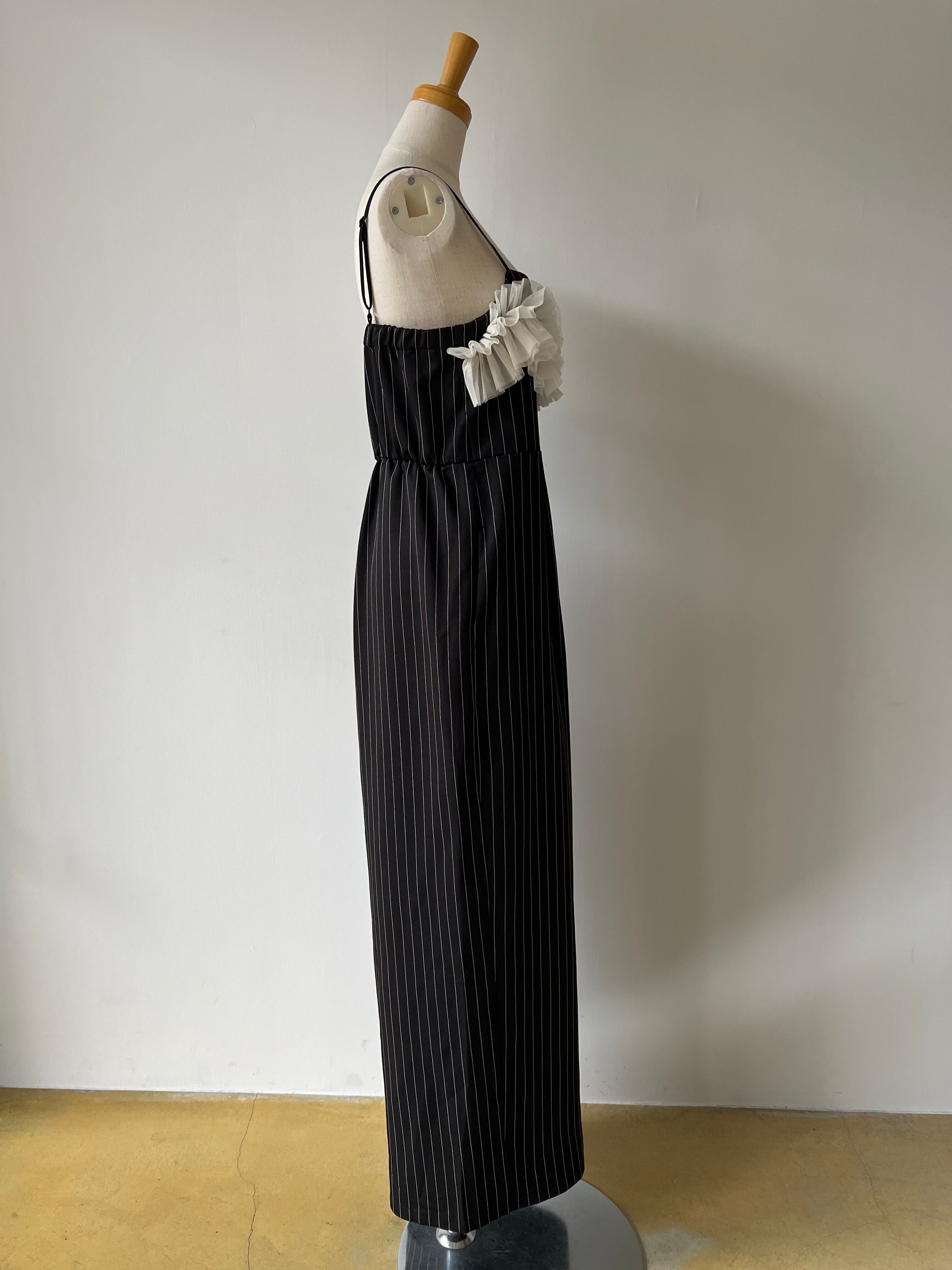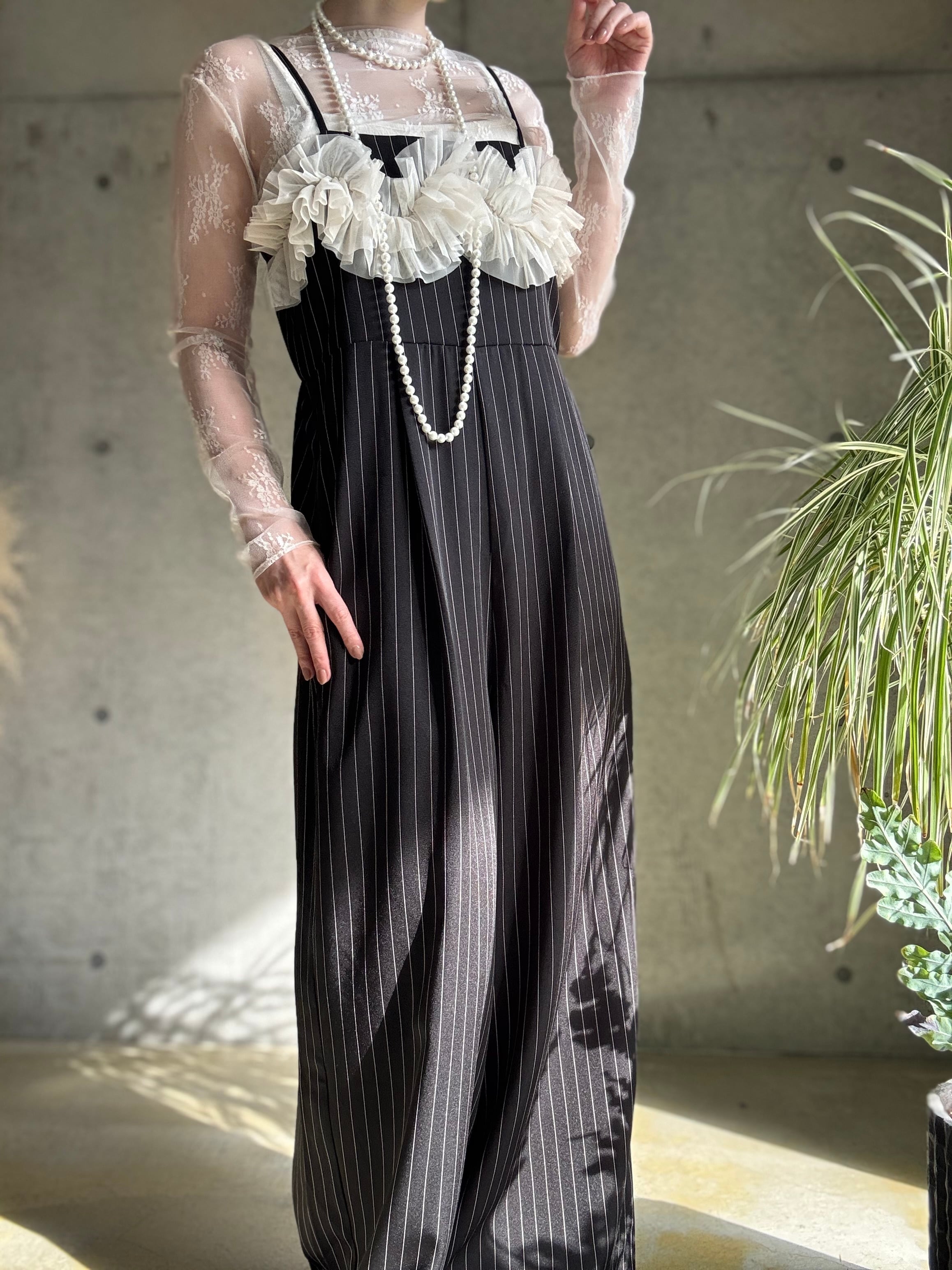 胸元のフリルが女性らしい華やかな印象のサロペット✨