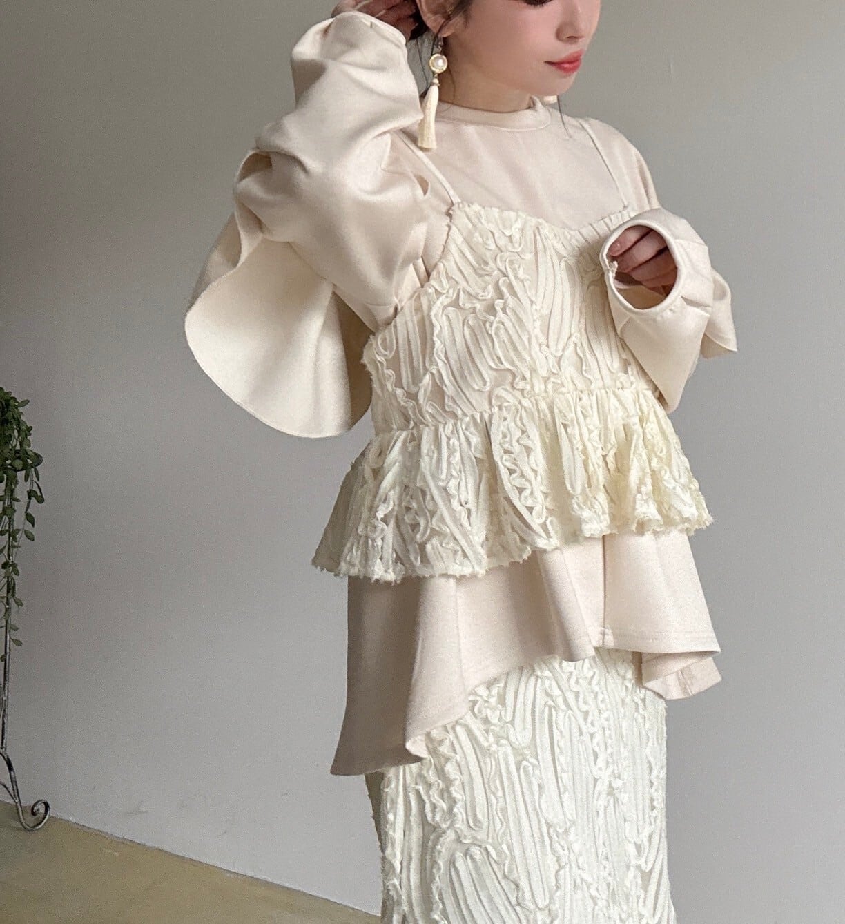 1枚で着るのはもちろん、ビスチェやシアーインナーなどをレイヤードするのもオススメ✨